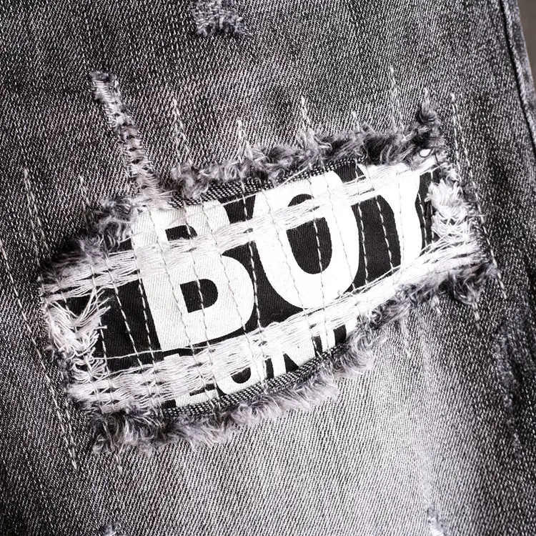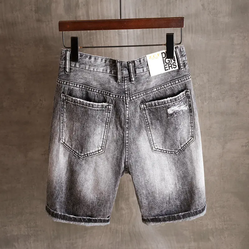 Men Grey Ripped Patched Short Jeans Hip Hop Style Men High Quality Personalized Trendy Casual Jean Shorts