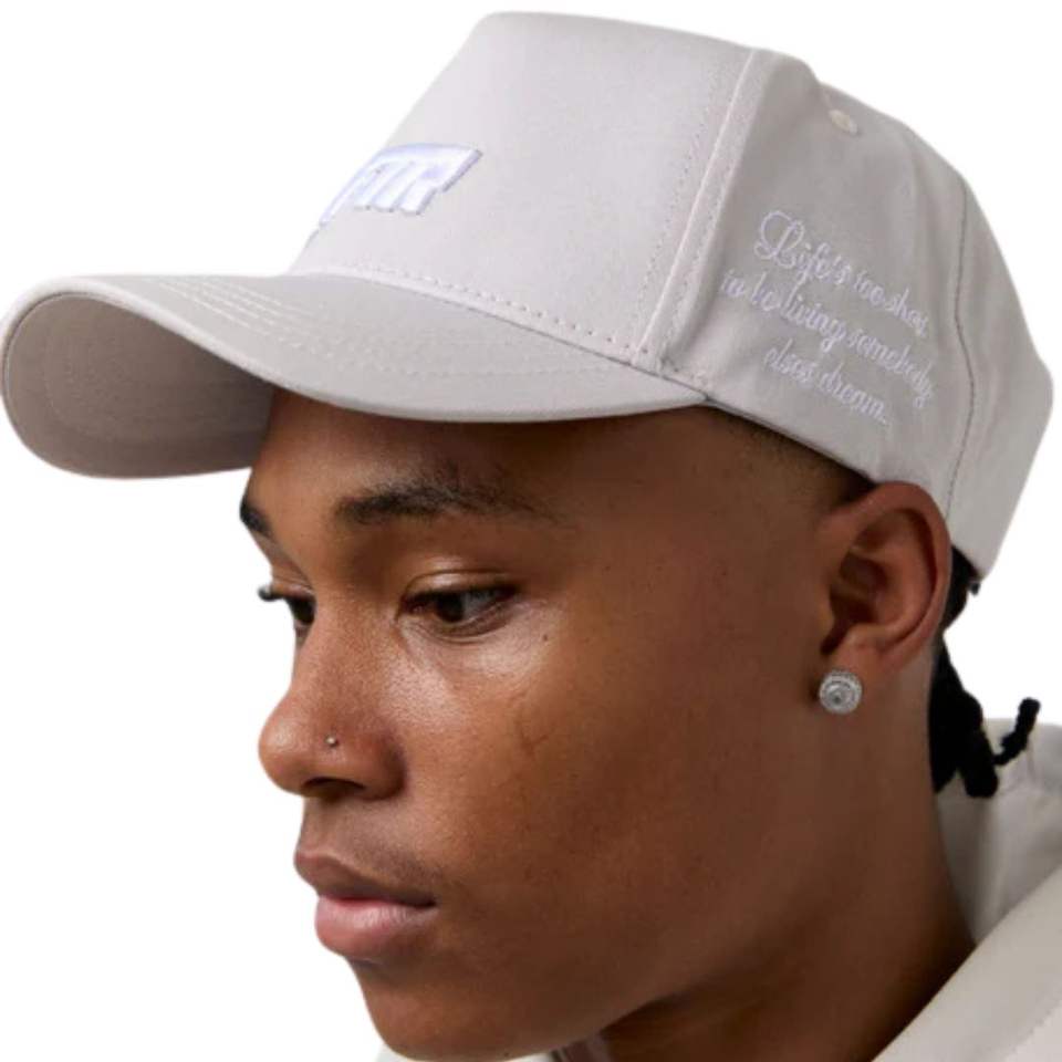 Men Grey Trucker Cap Structured Snapback Hat with Curved Brim Embroidered Slogan Side Detail Adjustable Fit