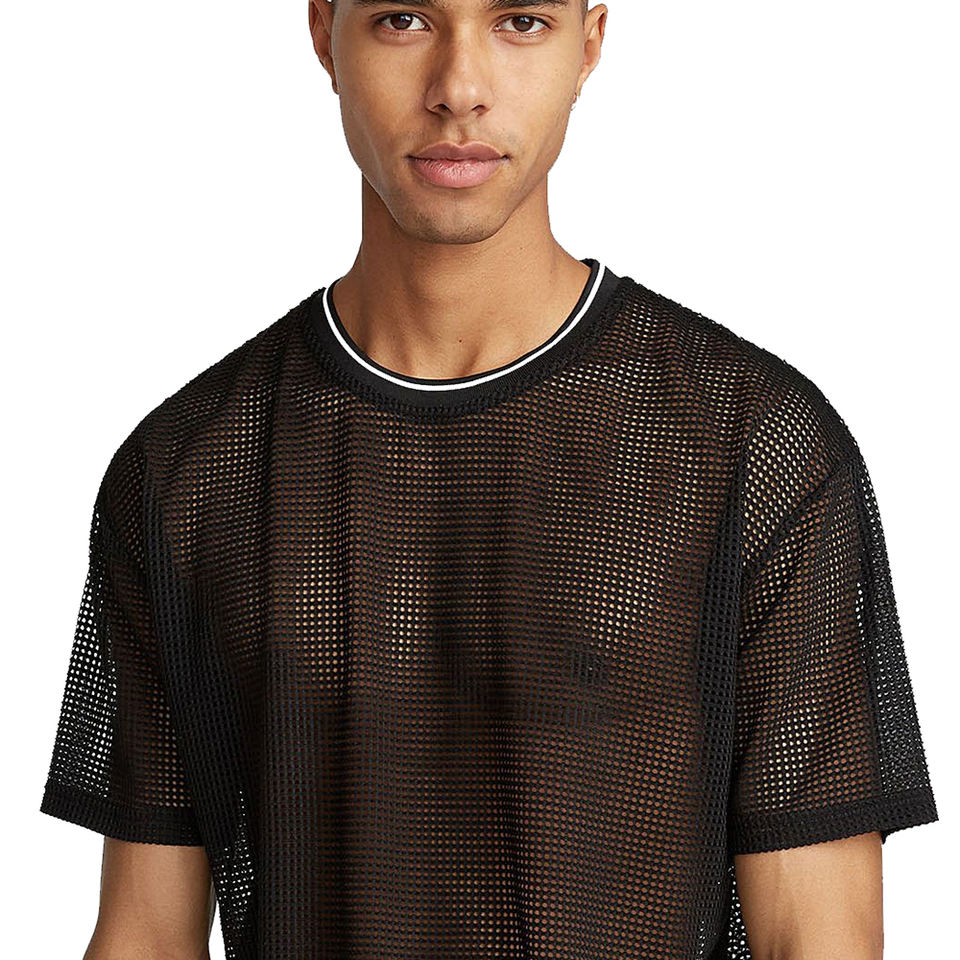 Men Gym Mesh T Shirt Gym Workout Spandex Polyester Black Color O Neck Drop Shoulder Adult Mesh T Shirt