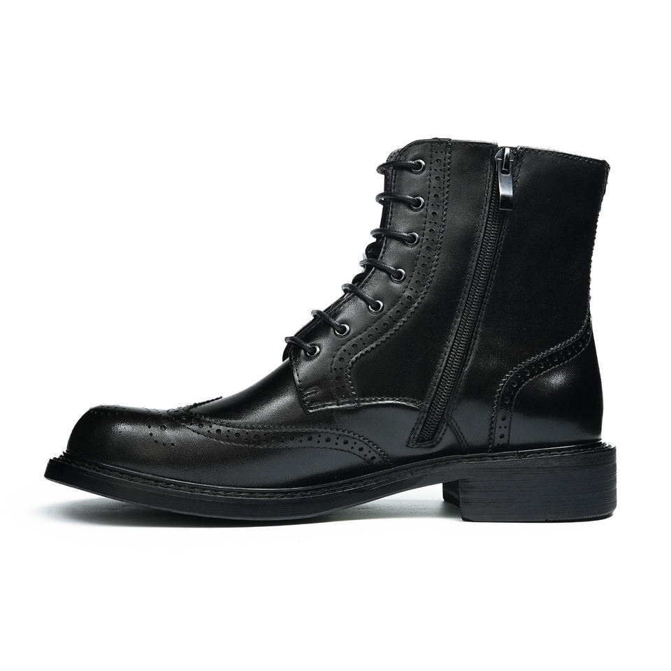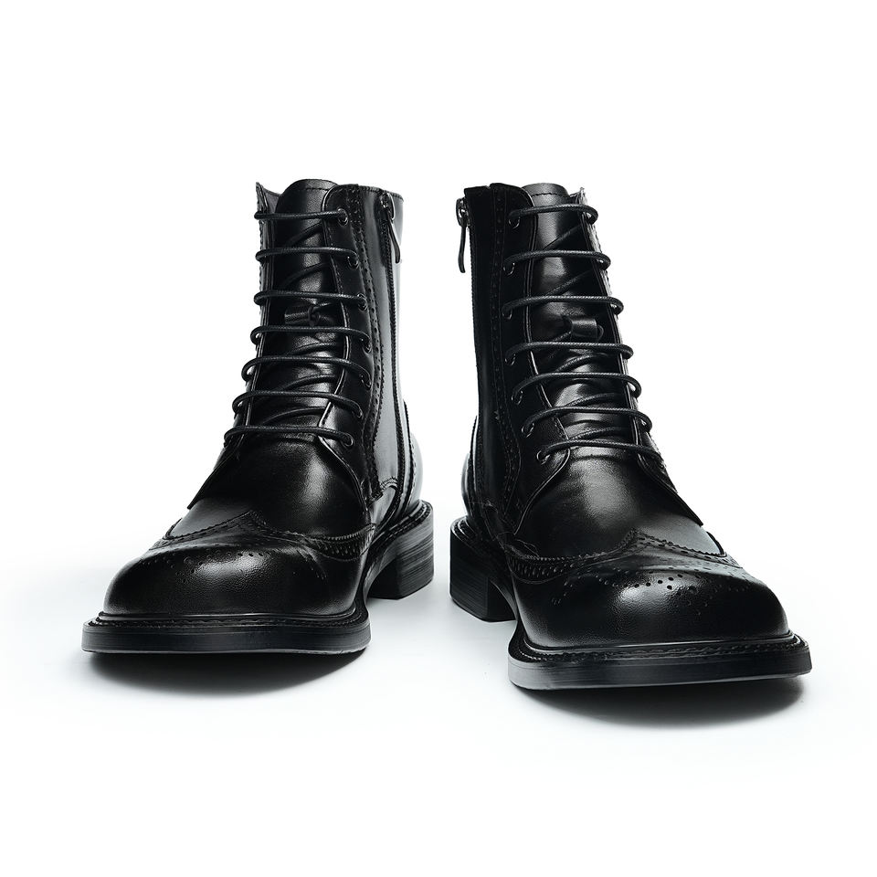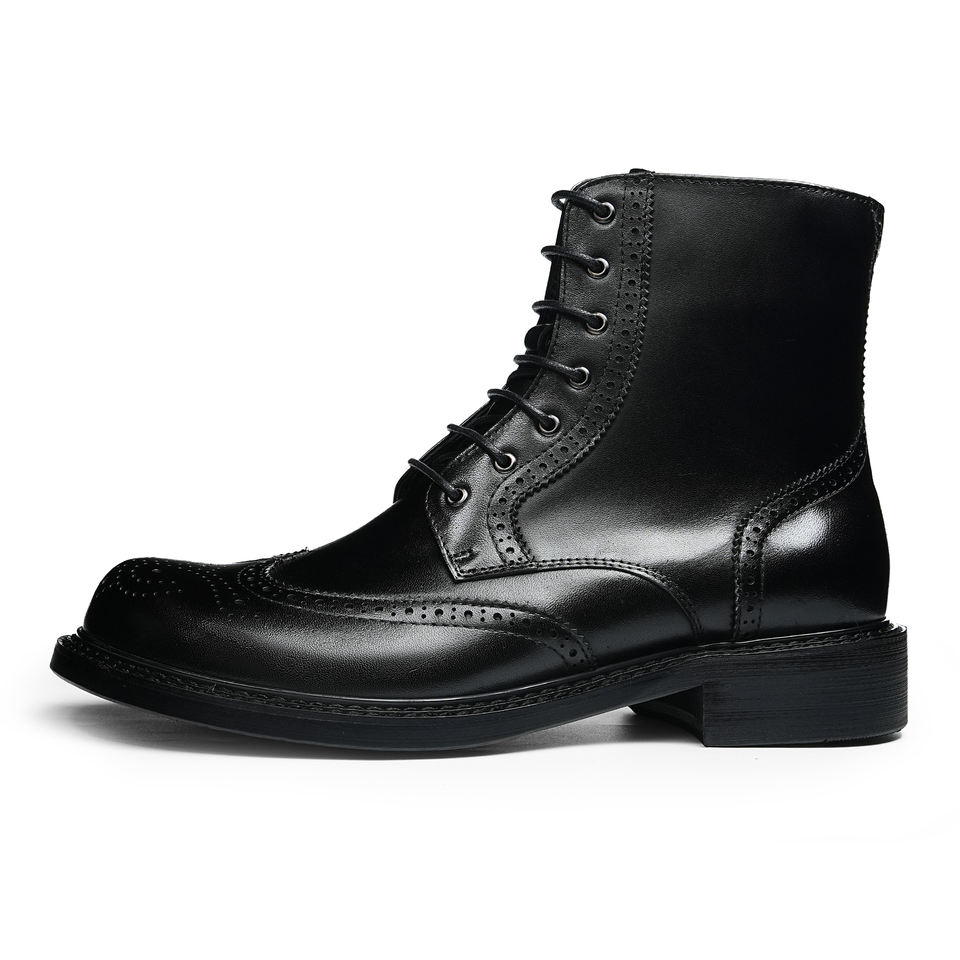 Men Handmade Genuine Leather Boots Brogue Wingtip Ankle Brown Leather Formal Dress Casual Shoes