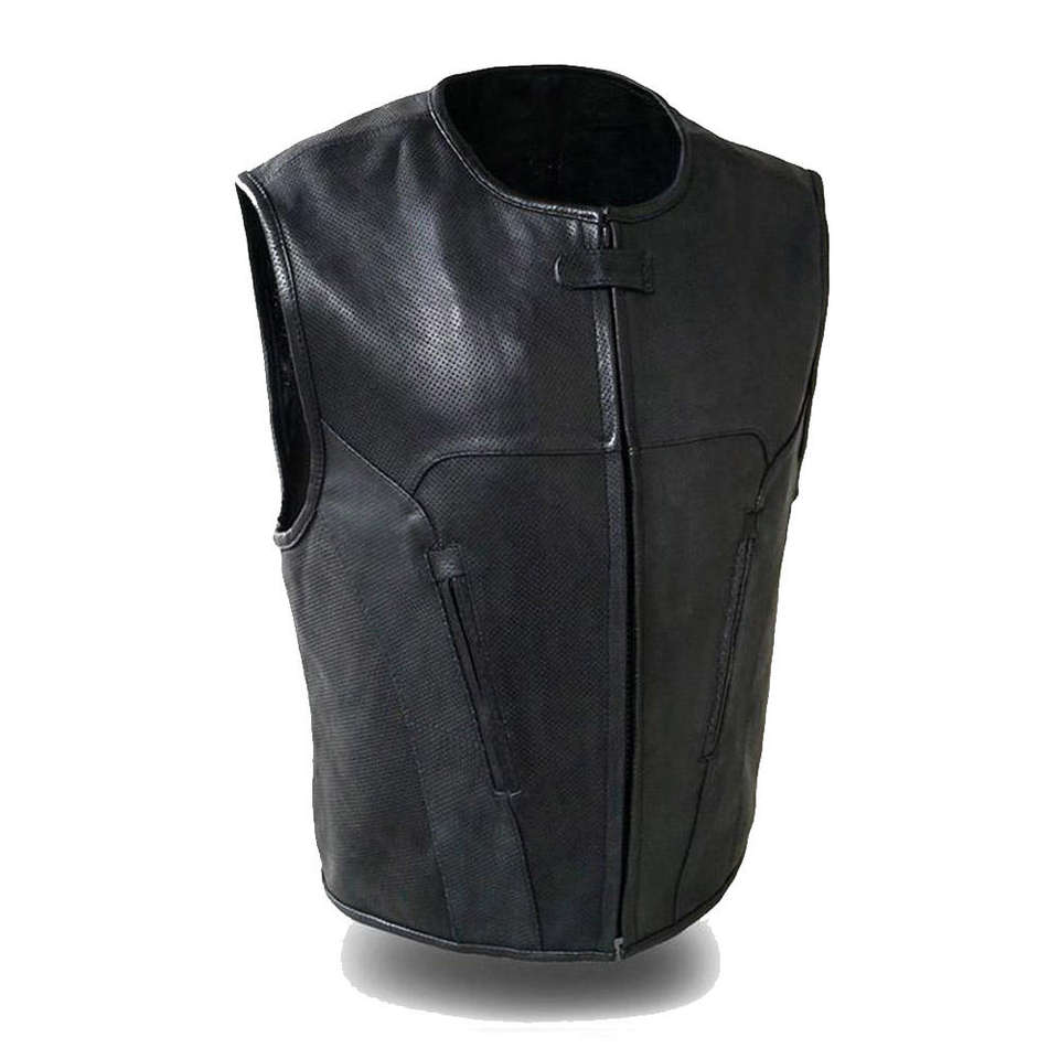 Men Heavy Duty Leather Biker Vest Winter Outer Wear with Horn Button for Long Distance Riding Custom Made Pakistan Manufacturer