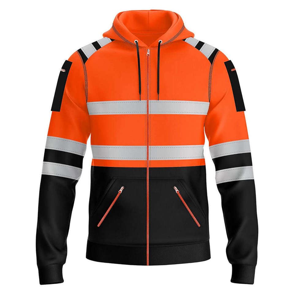 Men Hi Vis Customized Safety Hoodies High Visibility Zipper Hoodie Jackets Unisex Construction Reflective Zip up Jacket Hoodies