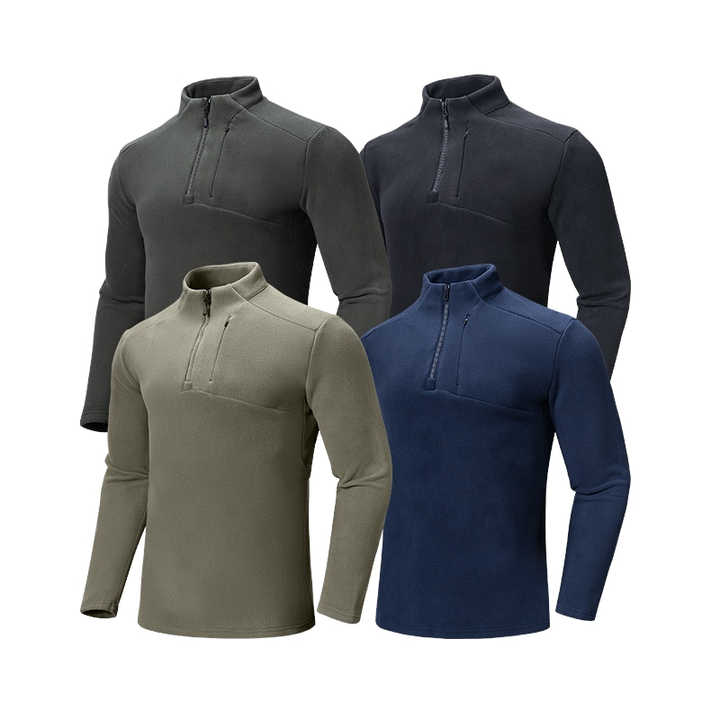 Winter Men High Elastic Street Style 1/4 Zip O Neck Sweatshirt Long Sleeved 100% Cotton Fleece Fitness T-Shirt Outdoor Sports
