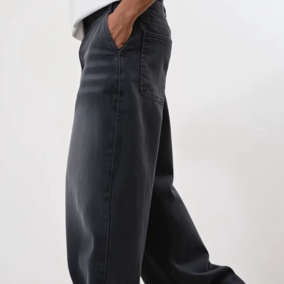 Men High Rise Baggy Denim Jeans Black Y2K Wide Leg Vintage Look Casual Streetwear Wholesale
