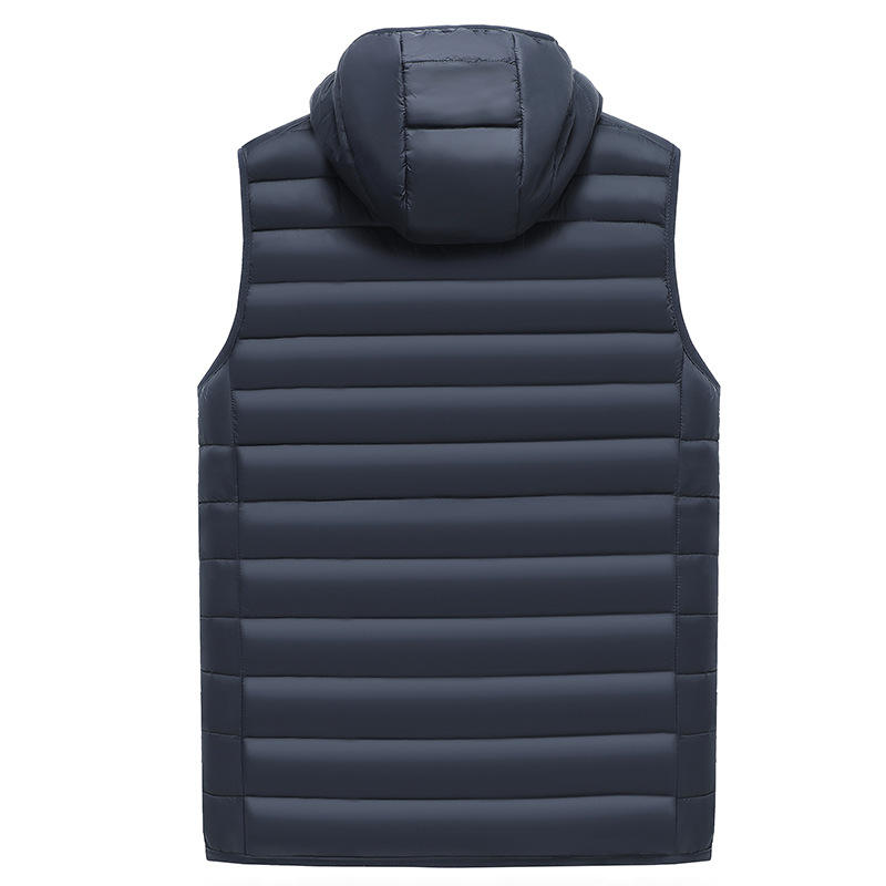 Men Hooded Puffer Vest Black Quilted Sleeveless Jacket with Zip Closure Casual Summer Eco-Friendly Waterproof Heated Warm Fit