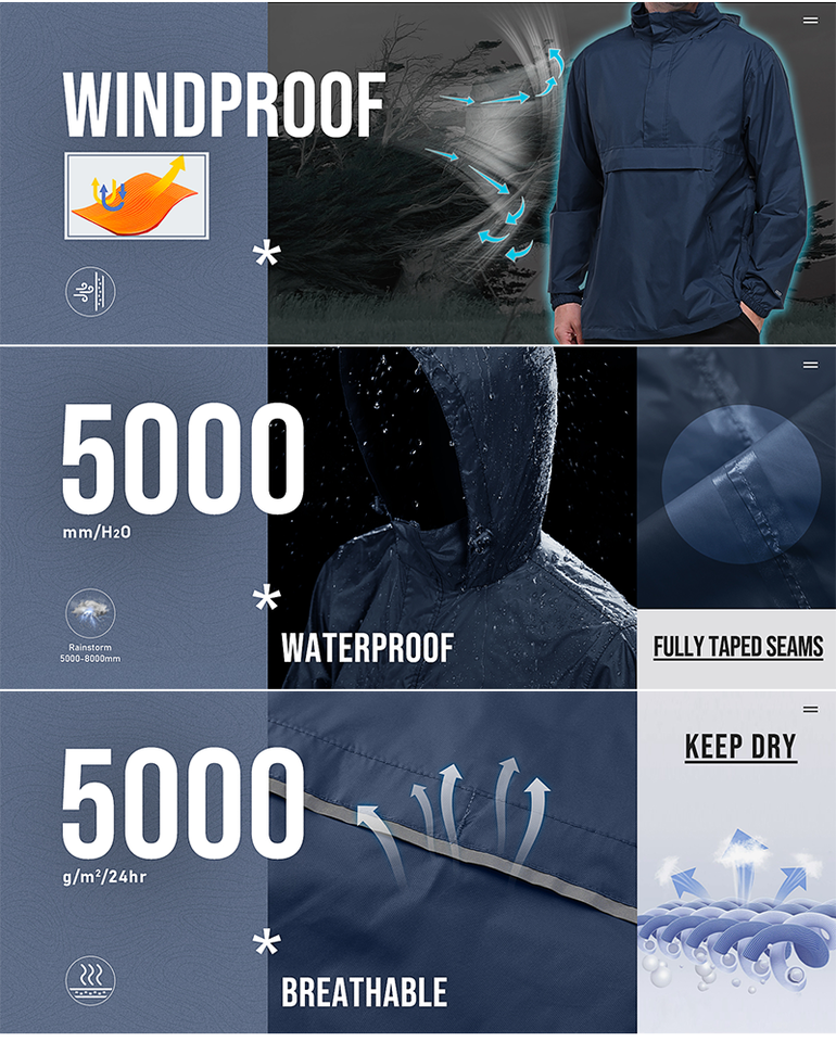 Men Jacket Portable Lightweight Breathable Waterproof Jacket With High Visibility Stripe