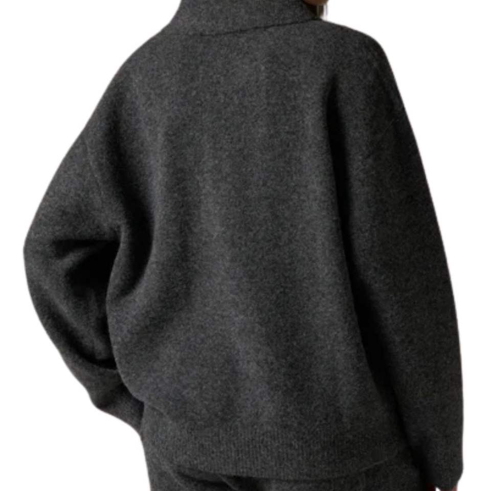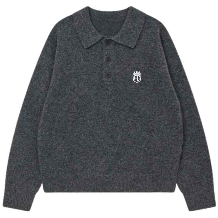 Men Knit Long Sleeve Polo Sweater Charcoal Soft Textured Button Collar Pullover Casual Winter Top Cotton Blend OEM