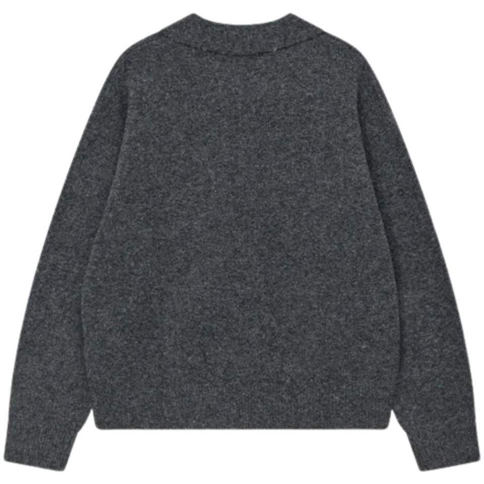 Men Knit Long Sleeve Polo Sweater Charcoal Soft Textured Button Collar Pullover Casual Winter Top Cotton Blend OEM