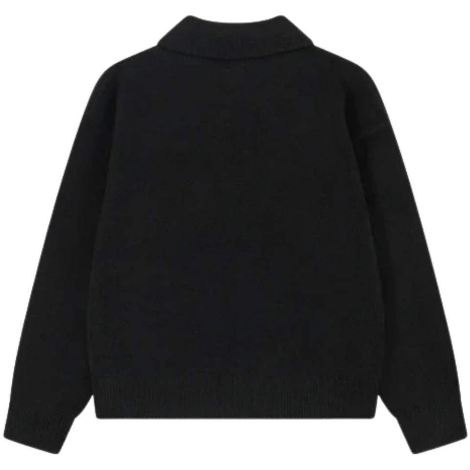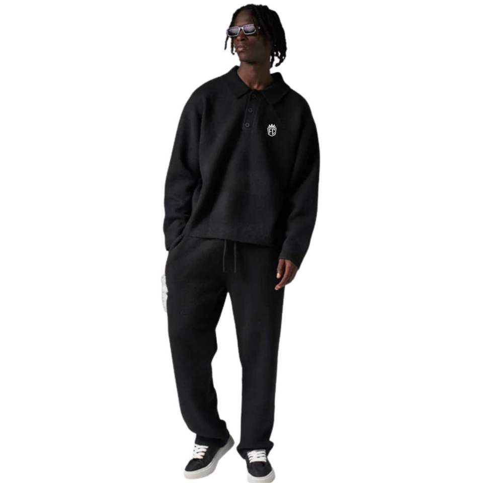 Men Knit Long Sleeve Polo Sweater Black Soft Textured Button Collar Pullover Casual Winter Top Cotton Blend OEM