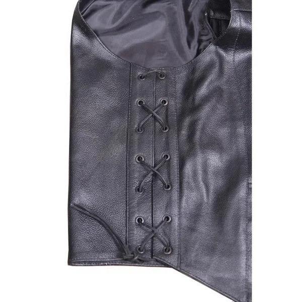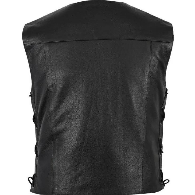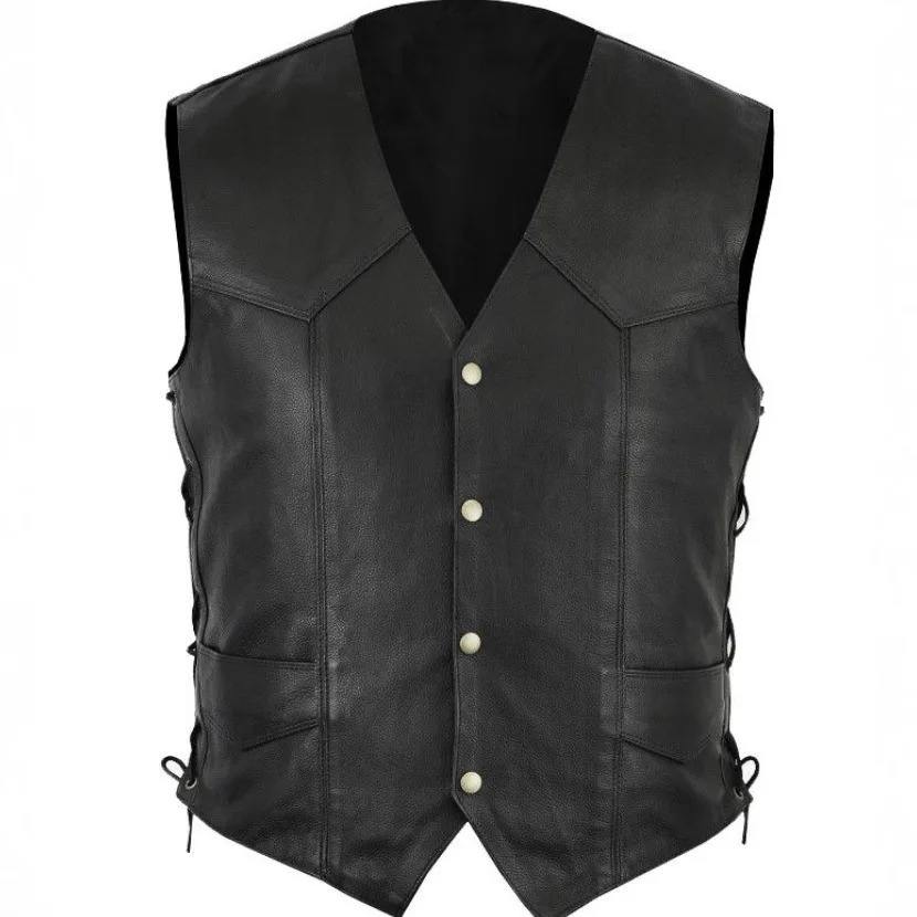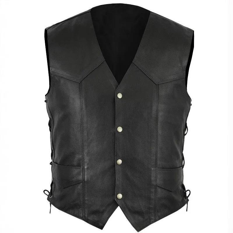 Men Leather Vest V-Neck Single Button Side-Tie Tank Top Punk Straight-Cut Open Cardigan Fashion Vest