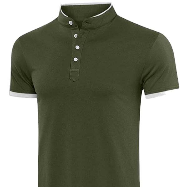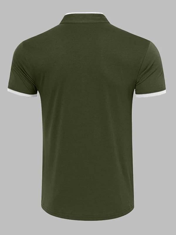 Men Letter Graphic Mock Neck Contrast Trim Polo Shirt HENLEY NECK OLIVE T SHIRT Men Basic Khaki Green Polo T-Shirt