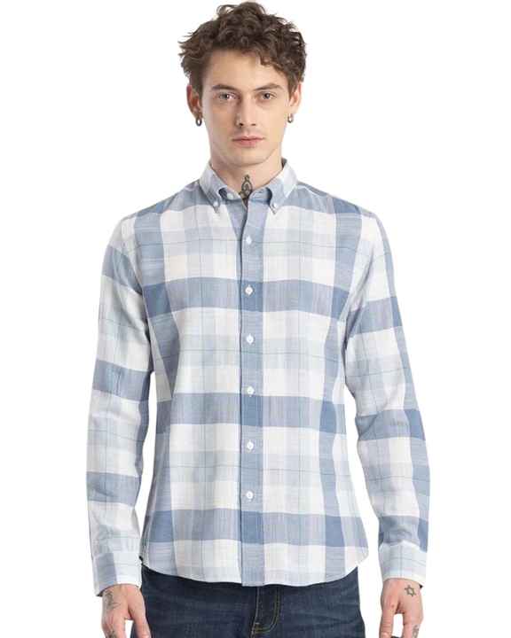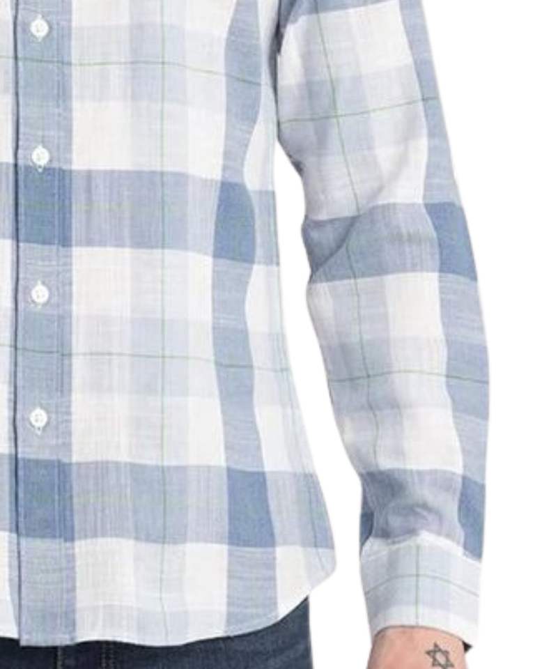 Men Light Blue And White Plaid Cotton Shirt Long Sleeve Button Down Casual Checked Shirt OEM Factory Custom Fit Wear Premium Pro