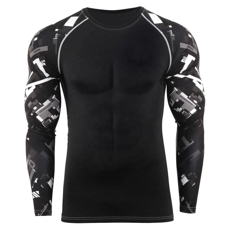 Men Long Sleeve Compression Shirt Camo Gym Base Layer Top Tight Fit Training Running Fitness Sportswear Rash Guard Tee