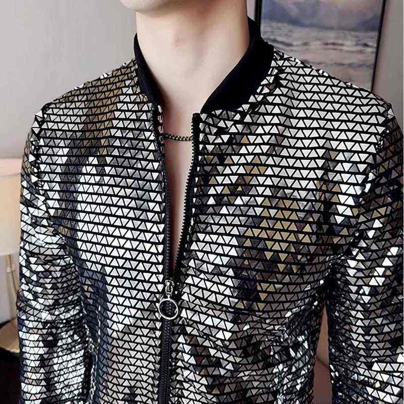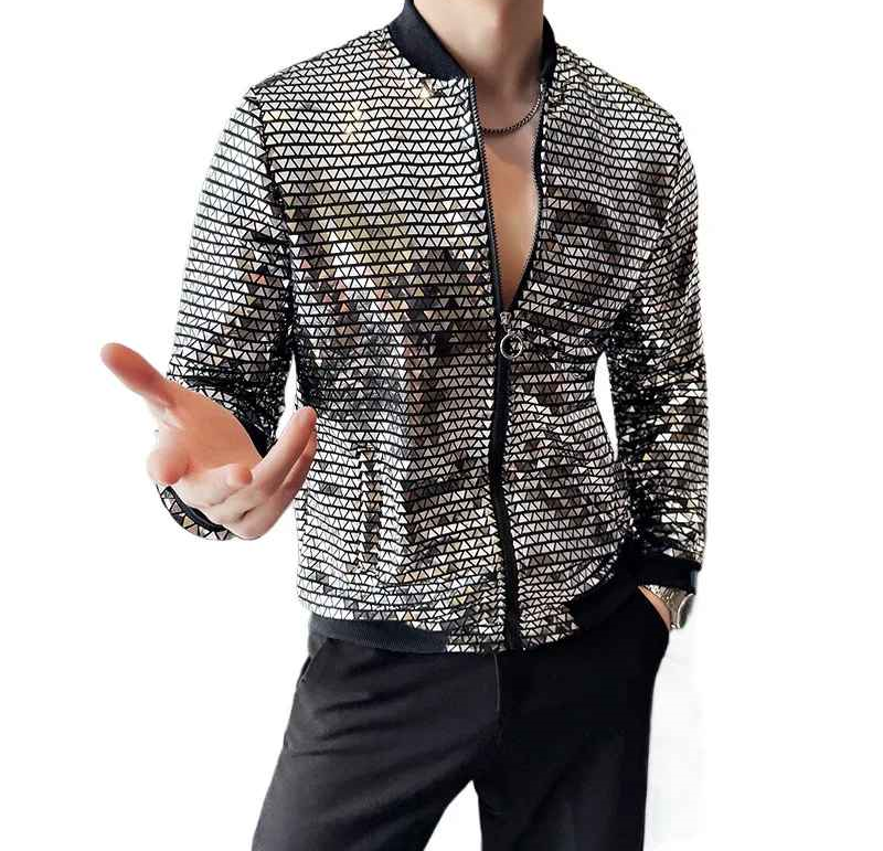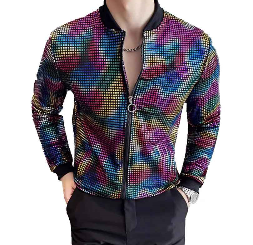 Men Long Sleeve Jacket, Baseball Collar Fashion Plaid Coat,Very Time Nightclub/Stage Performance,College Baseball jacket for men