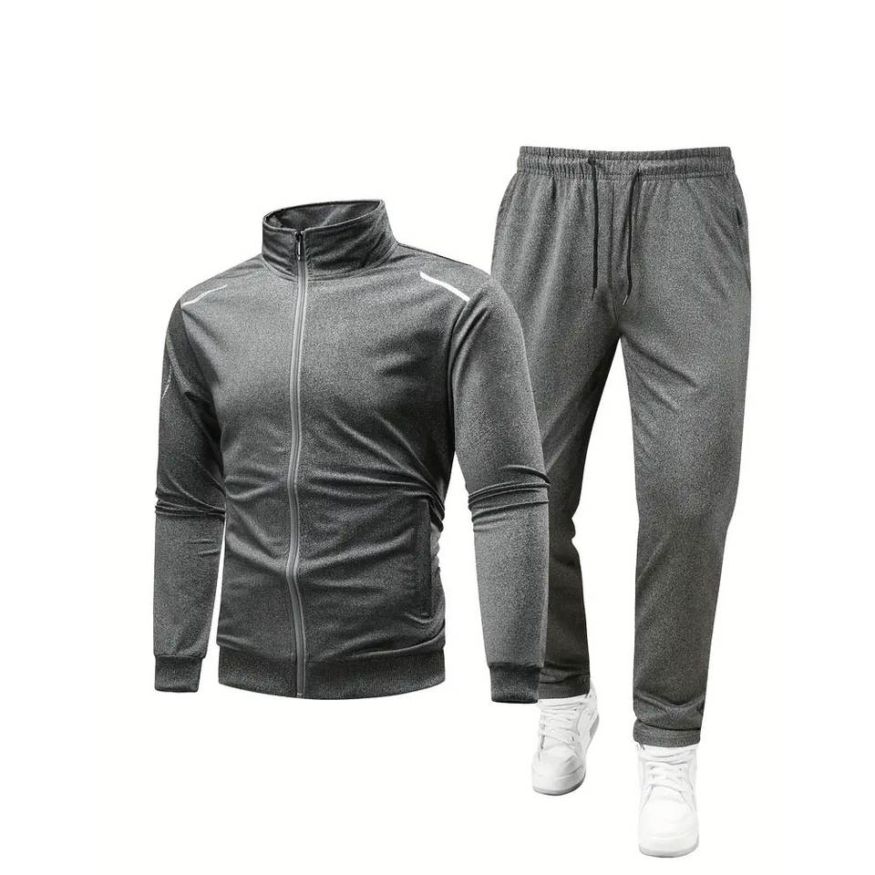 Men Long Sleeve Jacket and Pants Set 2pcs Solid Color Stand Collar Long Sleeve Top Drawstring Outdoor Casual Sports Suit