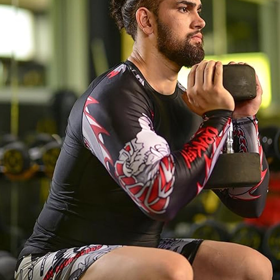 Men Long Sleeve Rash Guard Compression Shirt Graphic Print UV Protection Quick Dry Custom Logo OEM Bulk