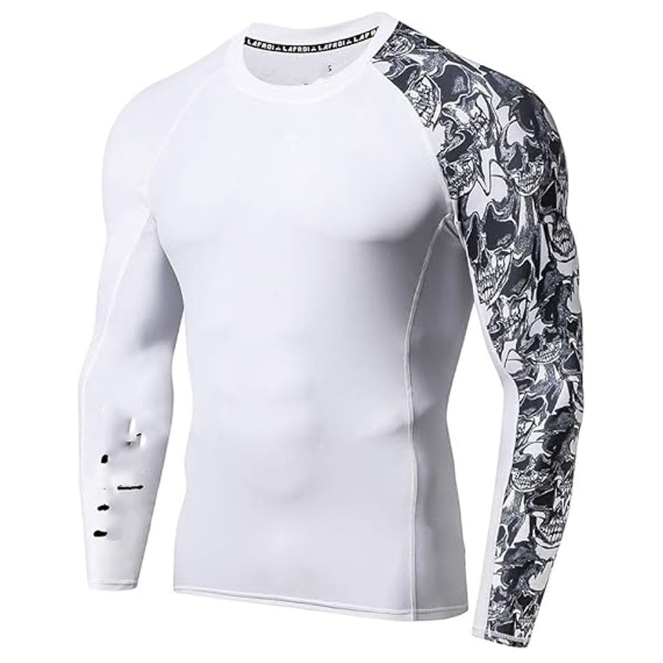 Men Long Sleeve Rash Guard Compression Shirt Graphic Print UV Protection Quick Dry Custom Logo OEM Supplier
