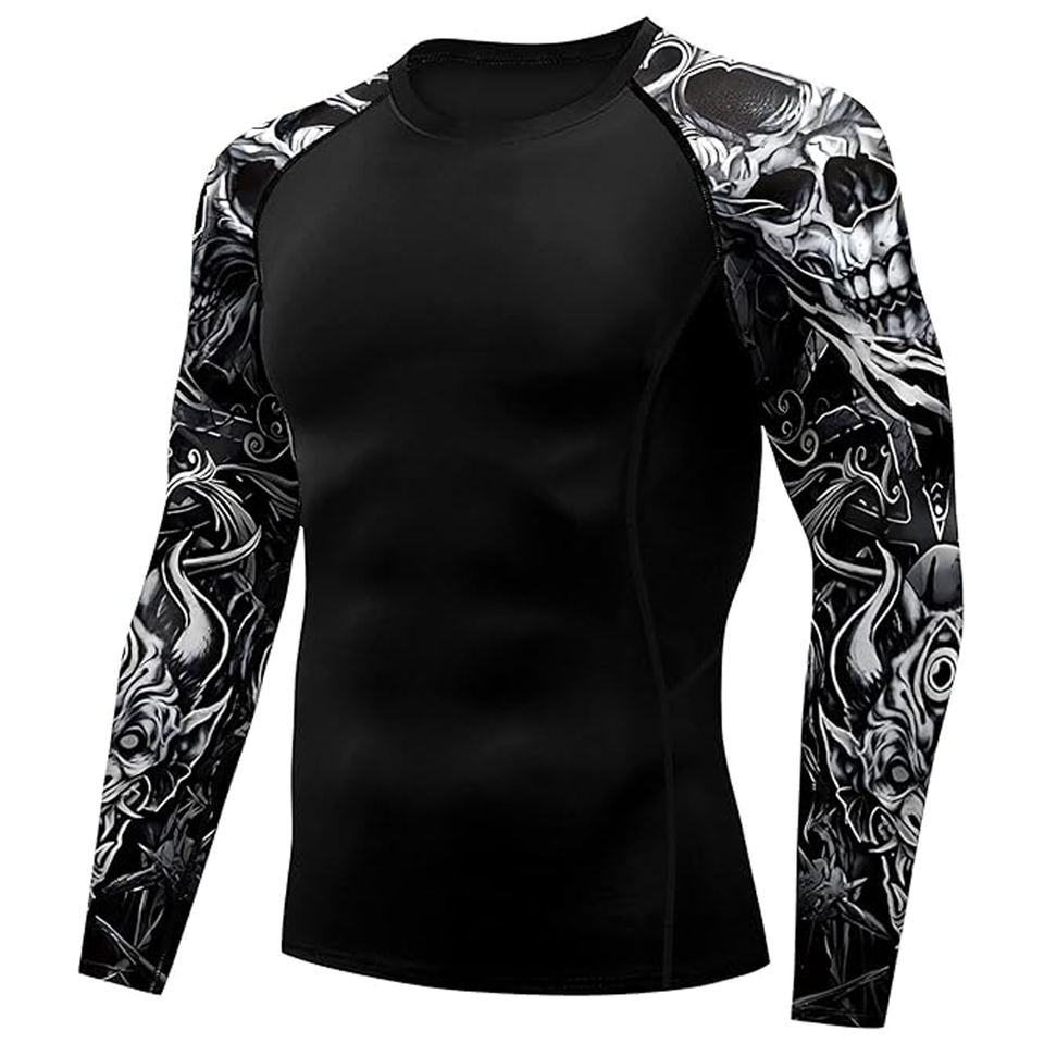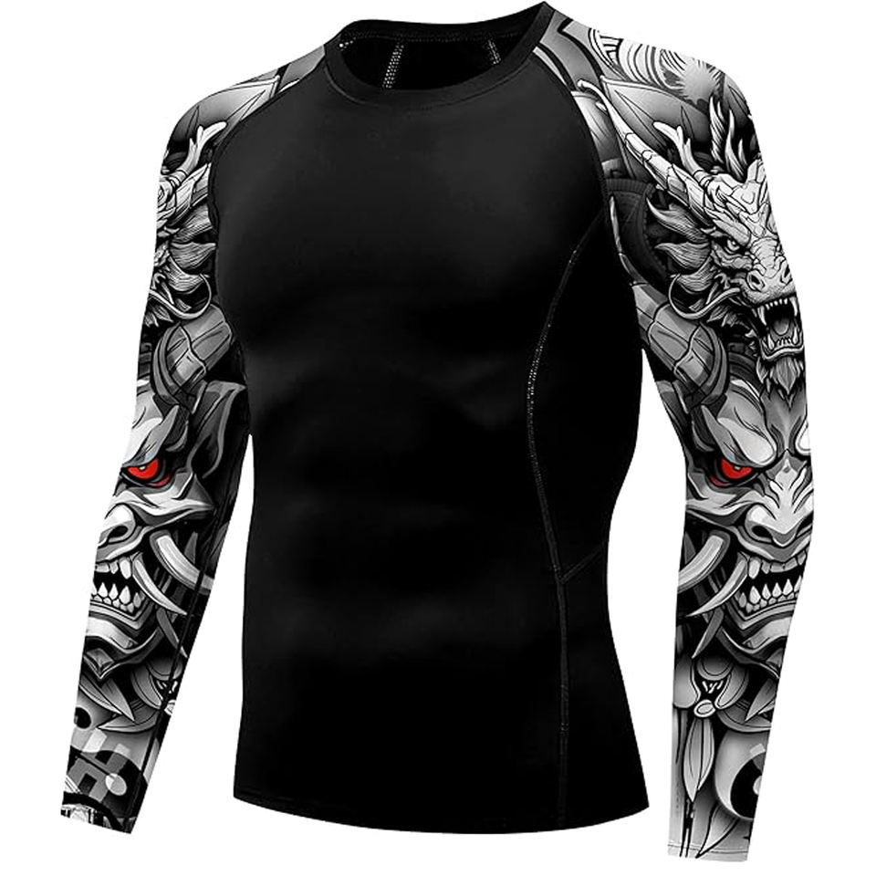 Men Long Sleeve Rash Guard Compression Shirt Graphic Print UV Protection Quick Dry High Quality OEM