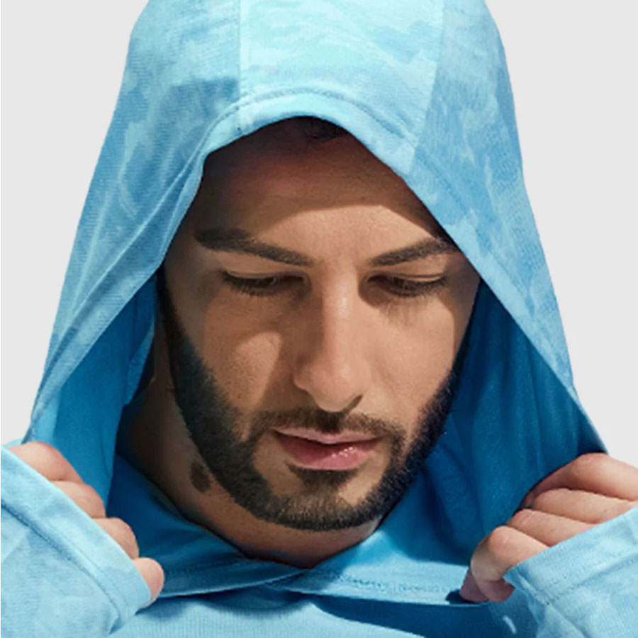 Men Long Sleeve UV Sun Protection Outdoor Hooded Shirt Hiking Athletic Active Hoodie with Thumb Holes
