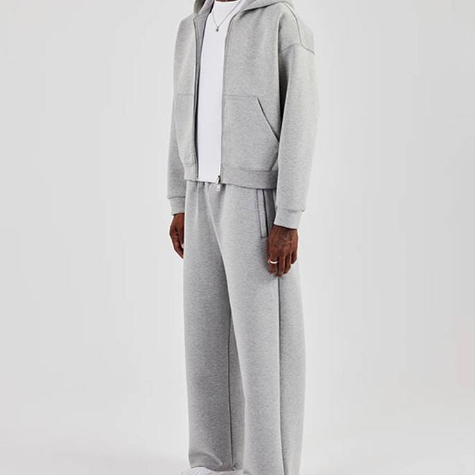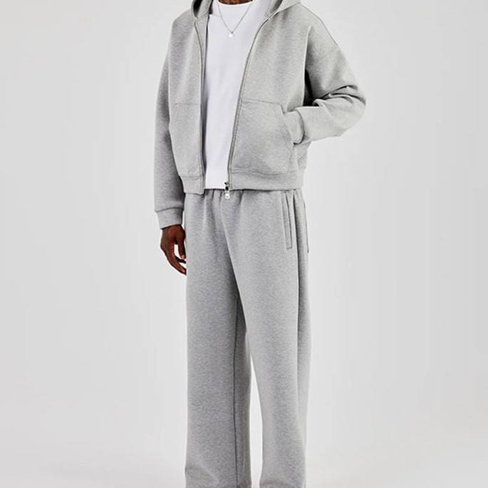Men Loose Fit Baggy Tech Fleece Sweatsuit Crop Hoodie and Pants Heavy Cotton Winter Streetwear Set Casual Sportswear Outfit