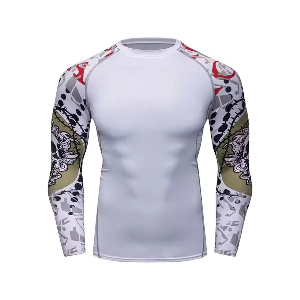 Men MMA Rash Guard Custom Printed Breathable Quick Dry Eco-Friendly Polyester Nylon Surfing Shirts Wholesale Rash Guard
