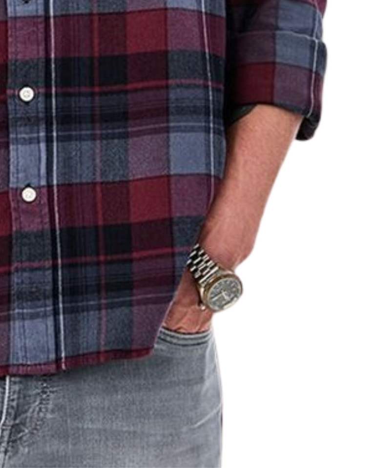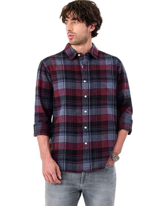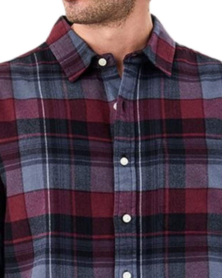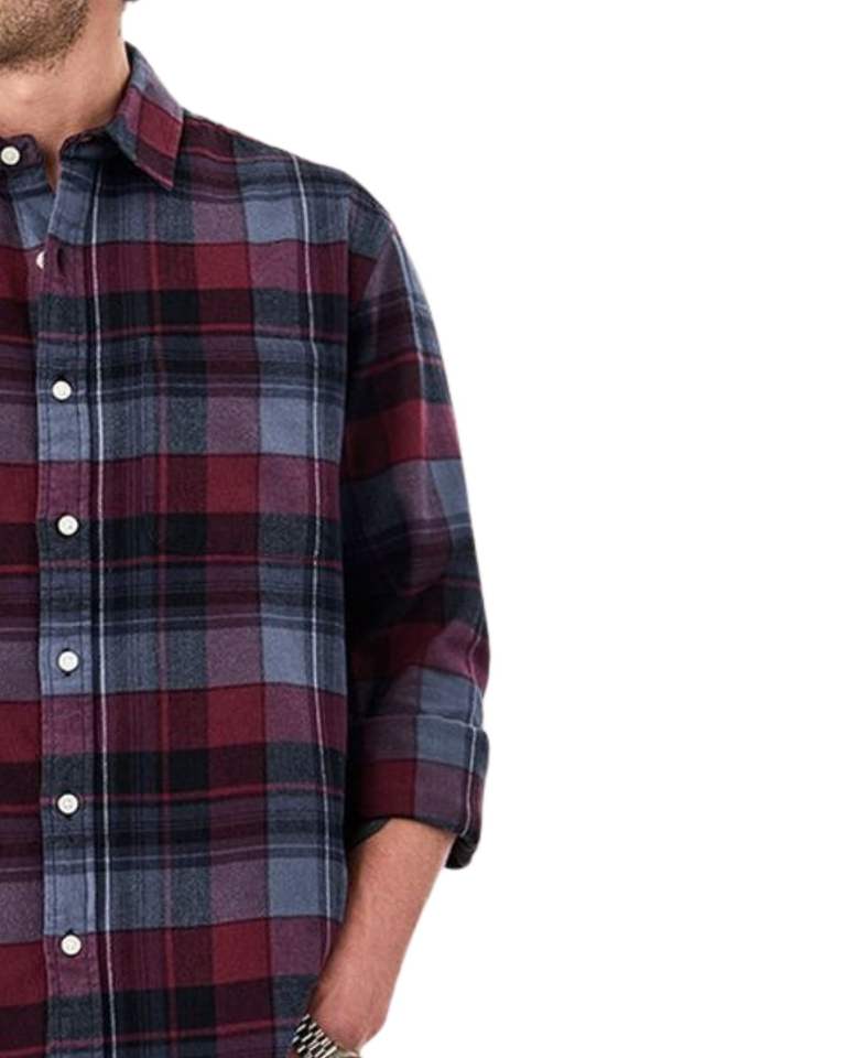 Men Maroon And Grey Plaid Cotton Flannel Shirt Long Sleeve Button Down Casual Winter Checked Shirt OEM Factory Custom Fit