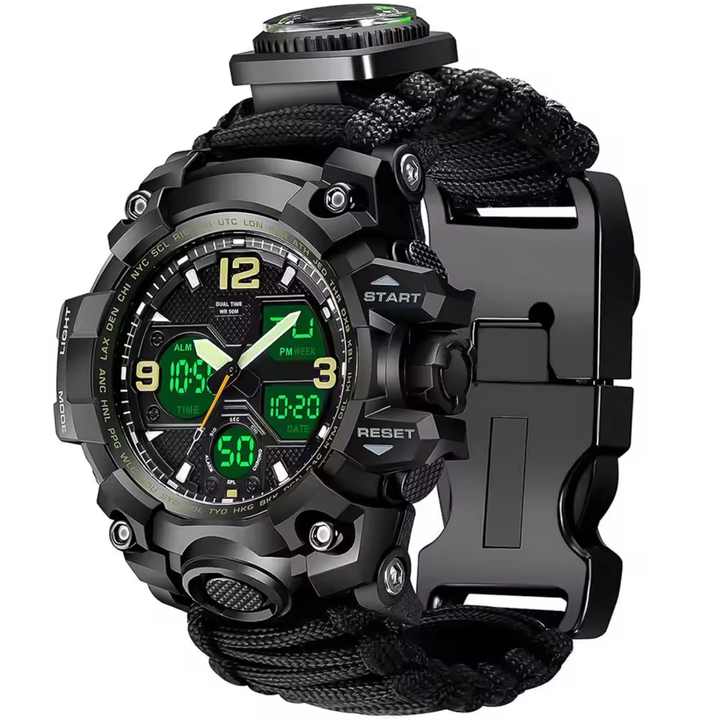 Men Multi Functional Watch 5 in 1 Emergency Watch Outdoor Camping Climbing Wrist Watch Compass Thermometer