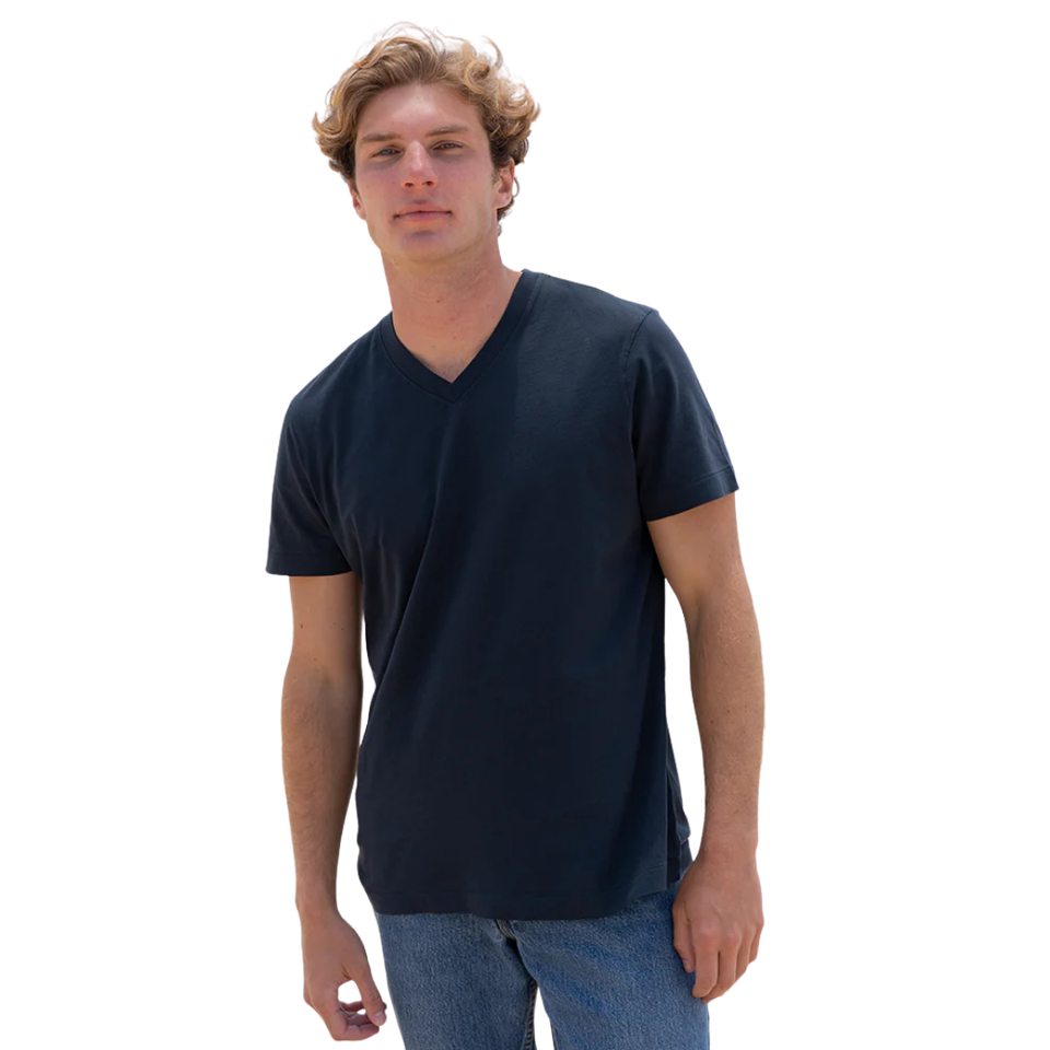Men Navy Blue 100% Luxury Organic Cotton V Neck T Shirt Pre Shrunk GOTS Certified Premium Short Sleeve Breathable Fit Tee