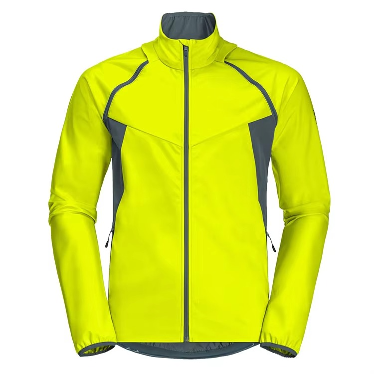 Men Neon Yellow Softshell Jacket Full Zip Lightweight Windproof Breathable Sports Outdoor Running Jacket High Visibility Stylish