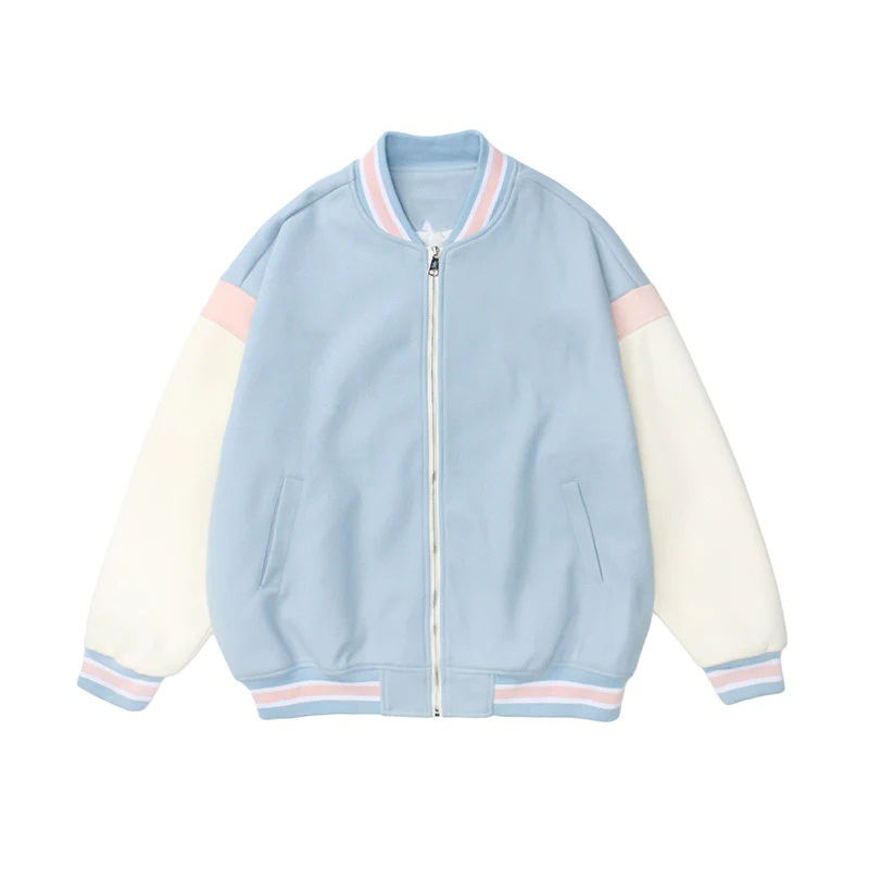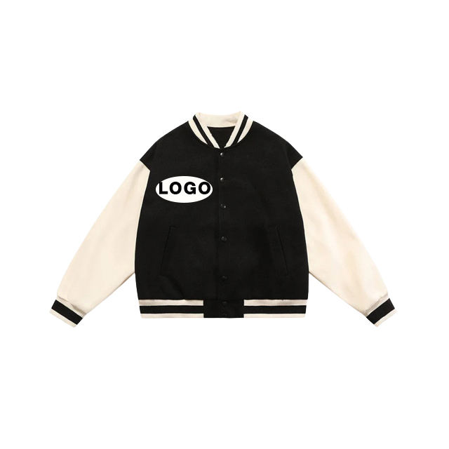 Men New Zipper Varsity Jacket Custom Design Black & White Sleeve & Wool Blend Ladies Varsity Jacket Men Made in India