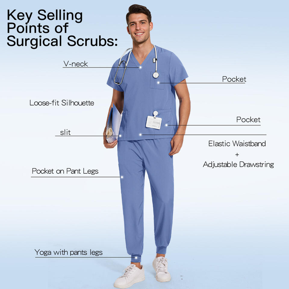 Men Nursing Uniform Sets for Women Surgical Scrubs Set Nurse Uniforms for Hospital Doctor Top & Pants with Multi Pocket