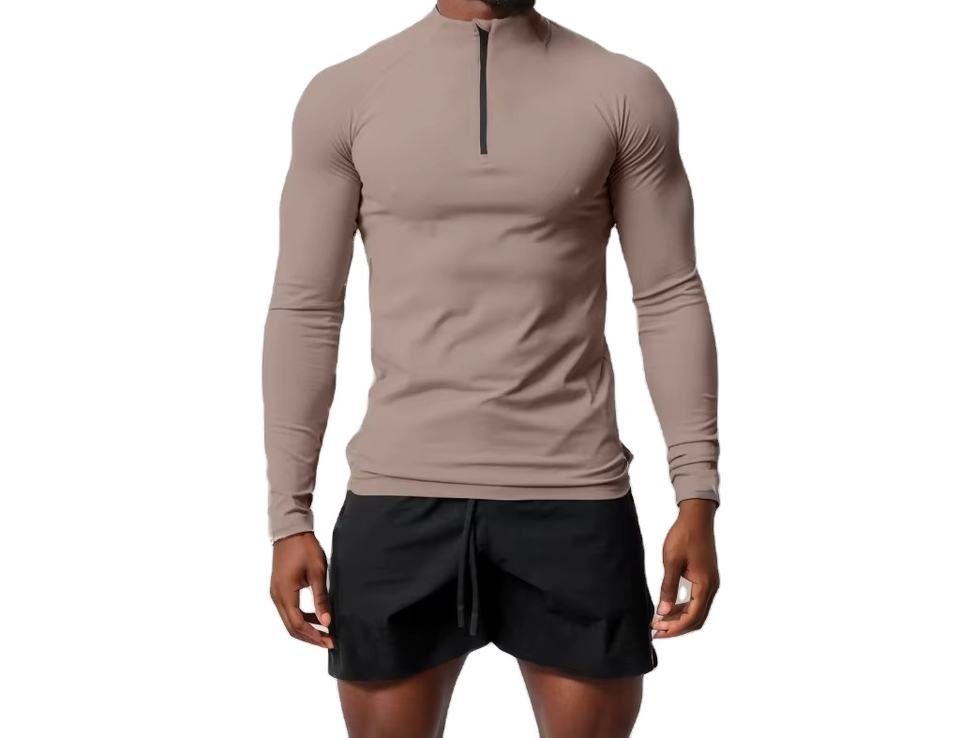 Men O-Neck Compression Half Zip Long Sleeve Quick Dry Breathable Eco-Friendly Fitness Top with Zip Training Gym Running T-Shirts