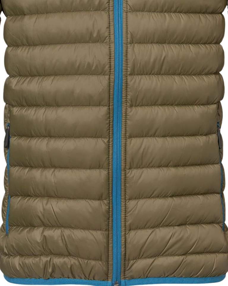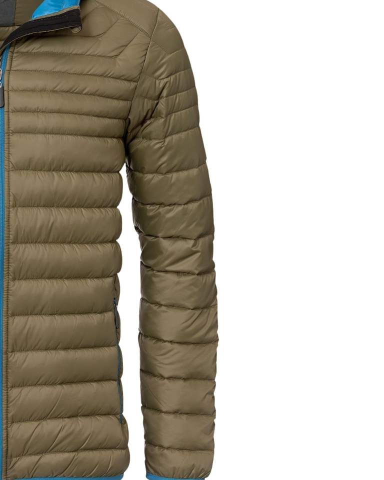 Men Olive Green Lightweight Down Jacket with Blue Hood Casual Puffer Windproof Zipper Coat for Outdoor Winter Wear