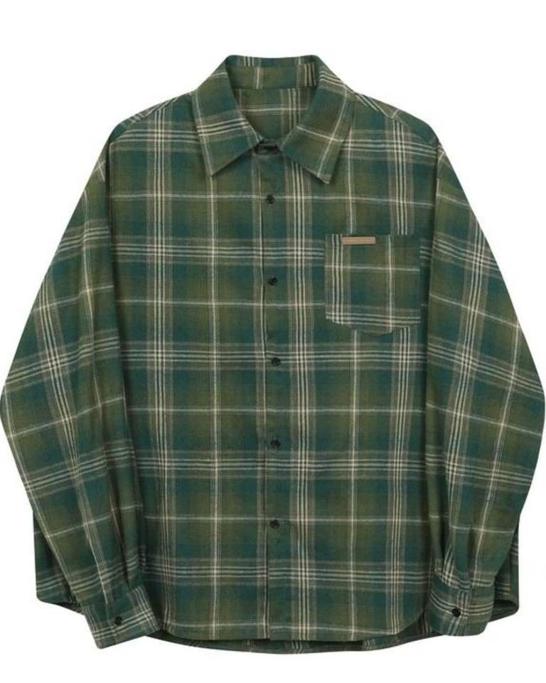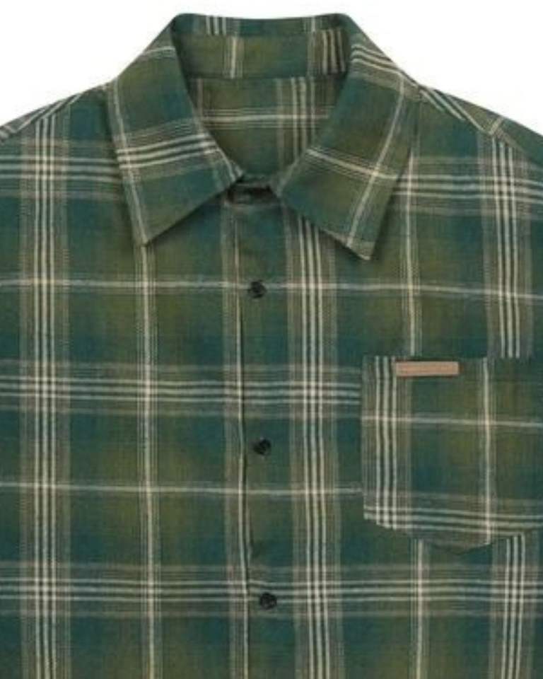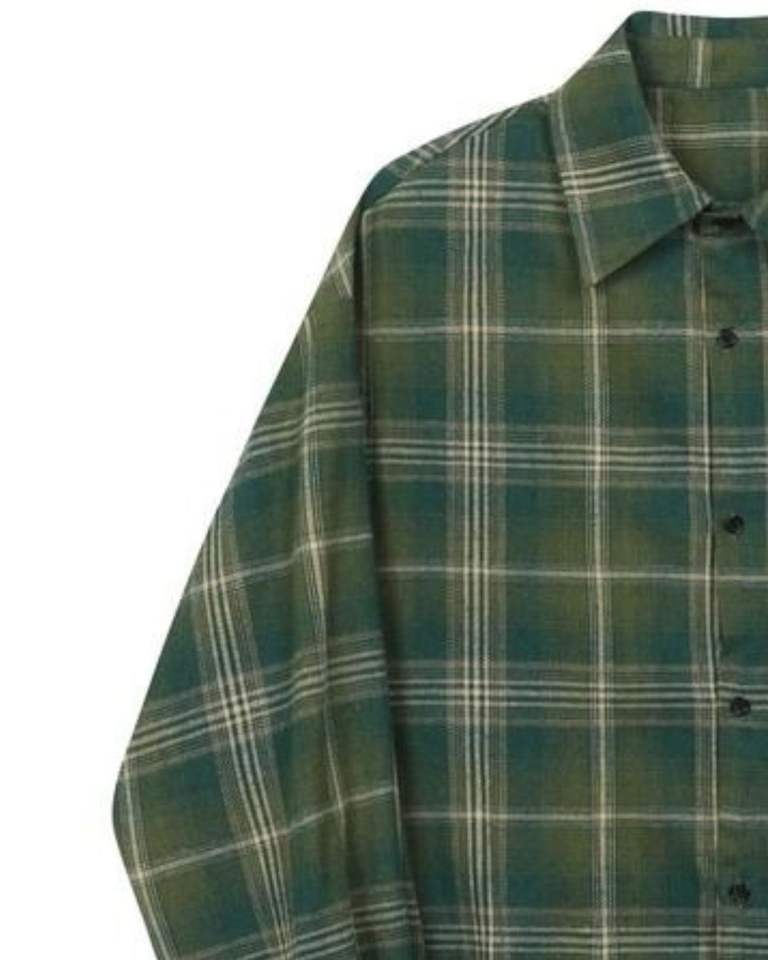Men Olive Green Plaid Casual Shirt Cotton Polyester Long Sleeve Button Down Check Shirt For Wholesale OEM Export Supply Market