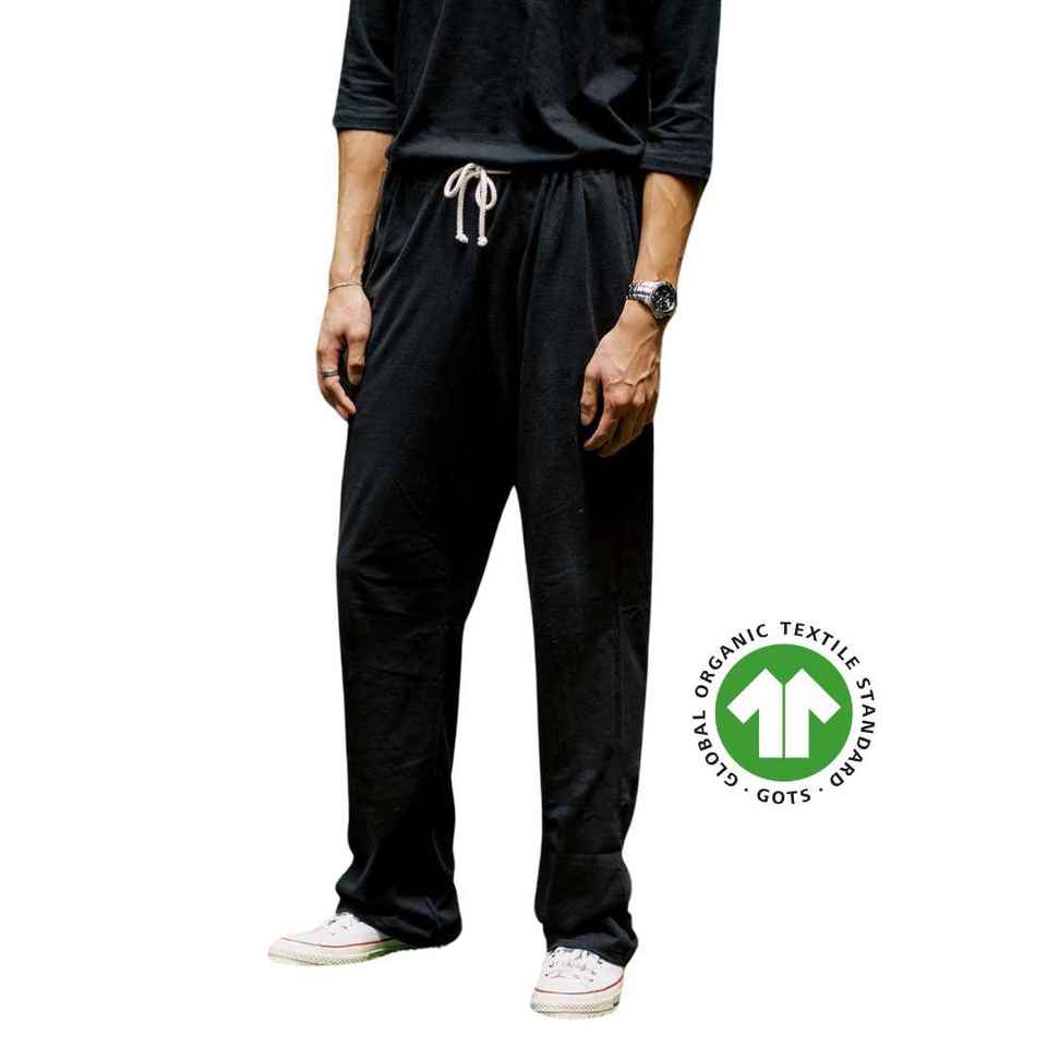 Men Organic Lounge Pants Black, 5.4 oz Jersey, anti-wrinkle, man trouser, Plain dyed Ultra-Relaxed and Straight Leg Fit