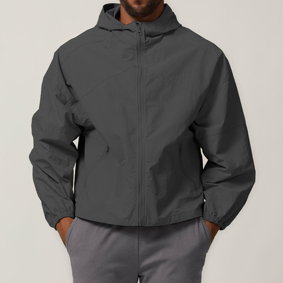 Men Outdoor Hooded Windbreaker Zipper up Long Sleeves Pockets Hiking Camping Coat Leisure Outfit Sport Polyester Men's Jacket