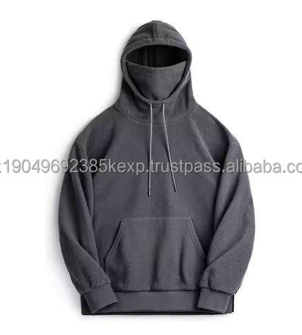 Men Oversized 450gsm Polar Fleece Heavyweight Vintage Blank Balaclava Type Mask Hoodie with Your Own Logo