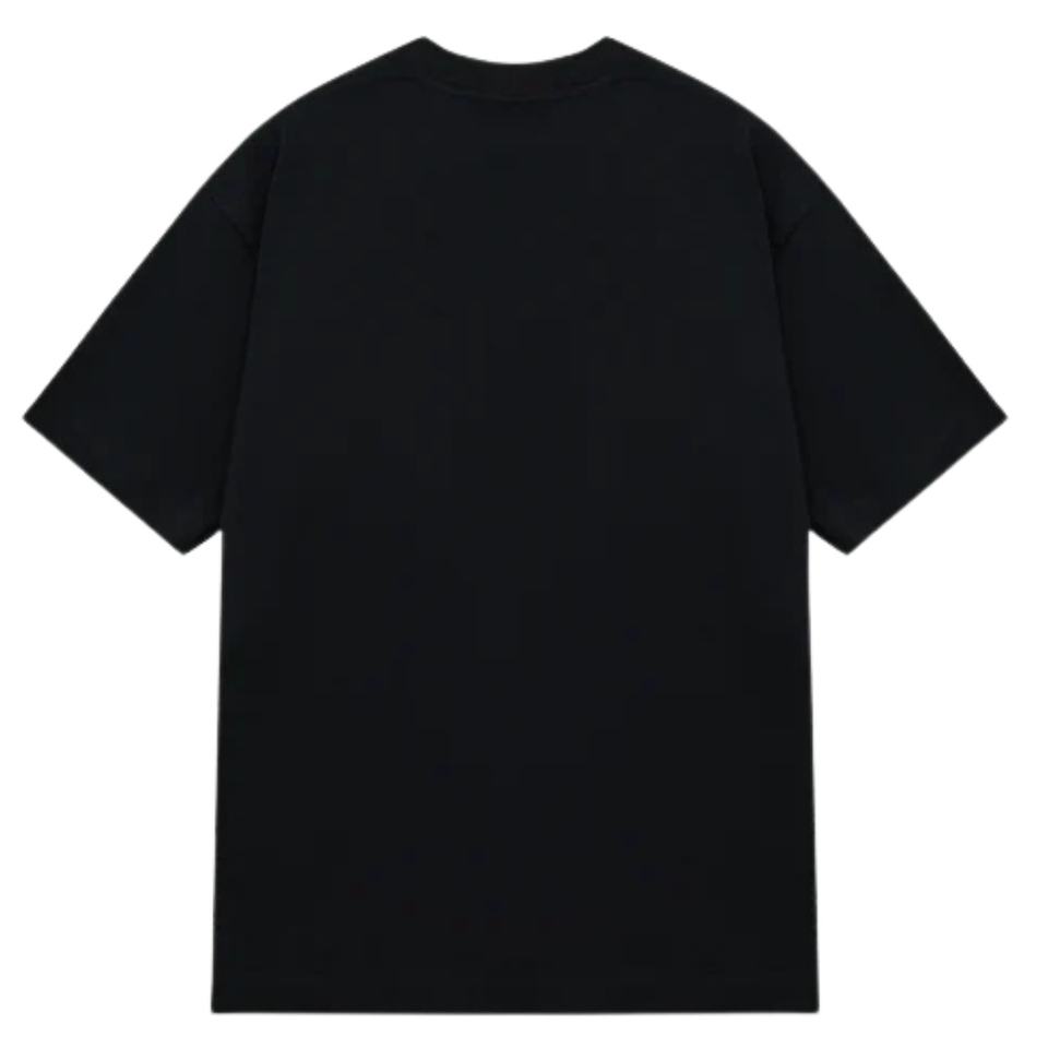 Men Oversized Black T Shirt Short Sleeve Crew Neck Cotton Casual Streetwear Top Small Chest Logo Print Summer Tee