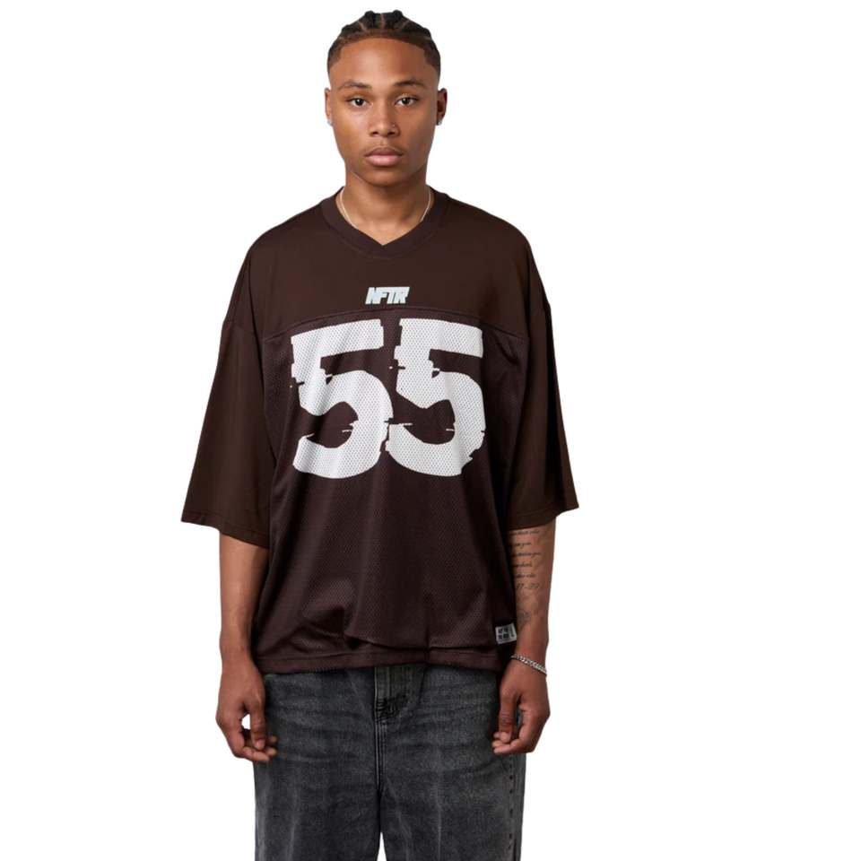 Men Oversized Football Jersey Shirt Brown Mesh Polyester Blend Streetwear Top with Large 55 Print Front Back