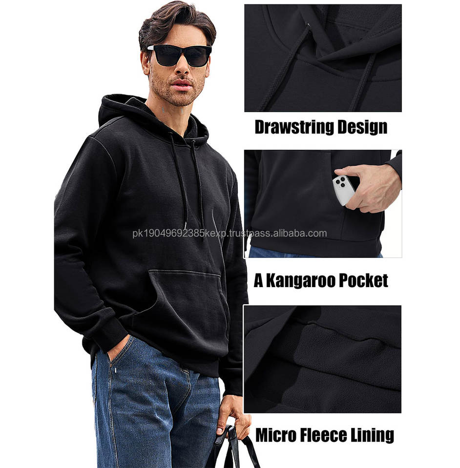 Men Oversized Hoodie Black Lightweight Cotton Polyester Blend Casual Streetwear Pullover for Daily Wear