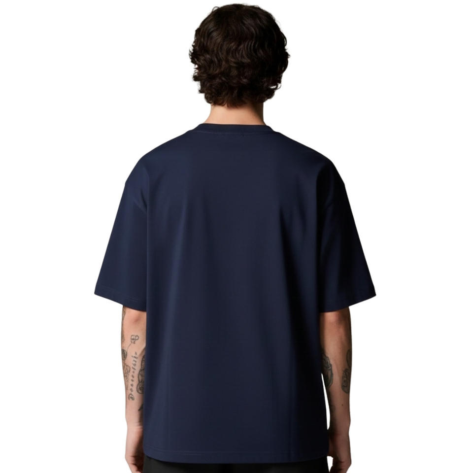 Men Oversized Short Sleeve T Shirt Dark Navy Front Graphic Cotton Casual Streetwear Tee Wholesale OEM Factory Supply