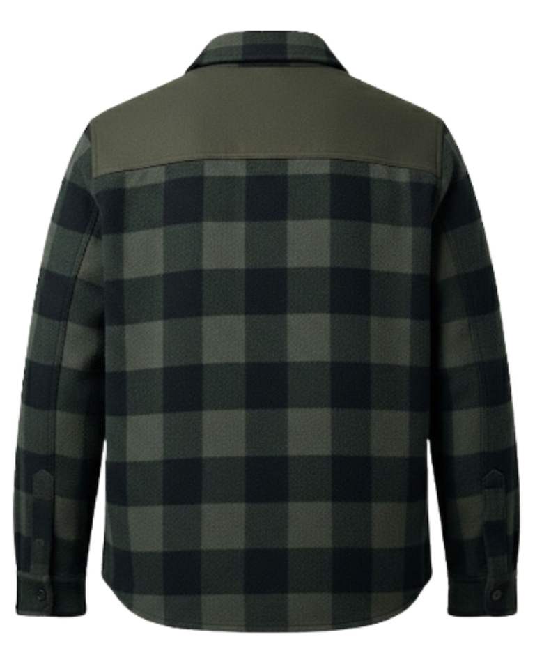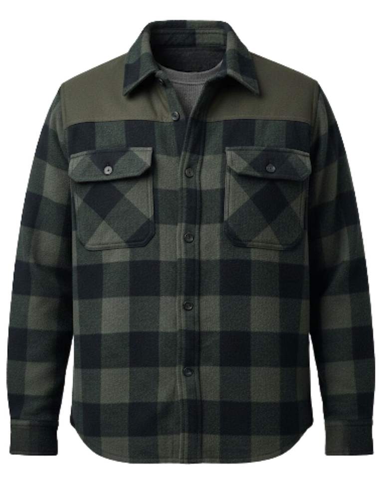 Men Plaid Check Shirt Jacket Long Sleeve Button Down Casual Flannel Overshirt Style Dark Green Olive Color Manufacture Wholesale