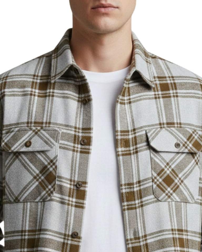 Men Plaid Check Shirt Jacket Long Sleeve Button Down Casual Flannel Overshirt Style Light Gray Brown Color Customized Wholesale