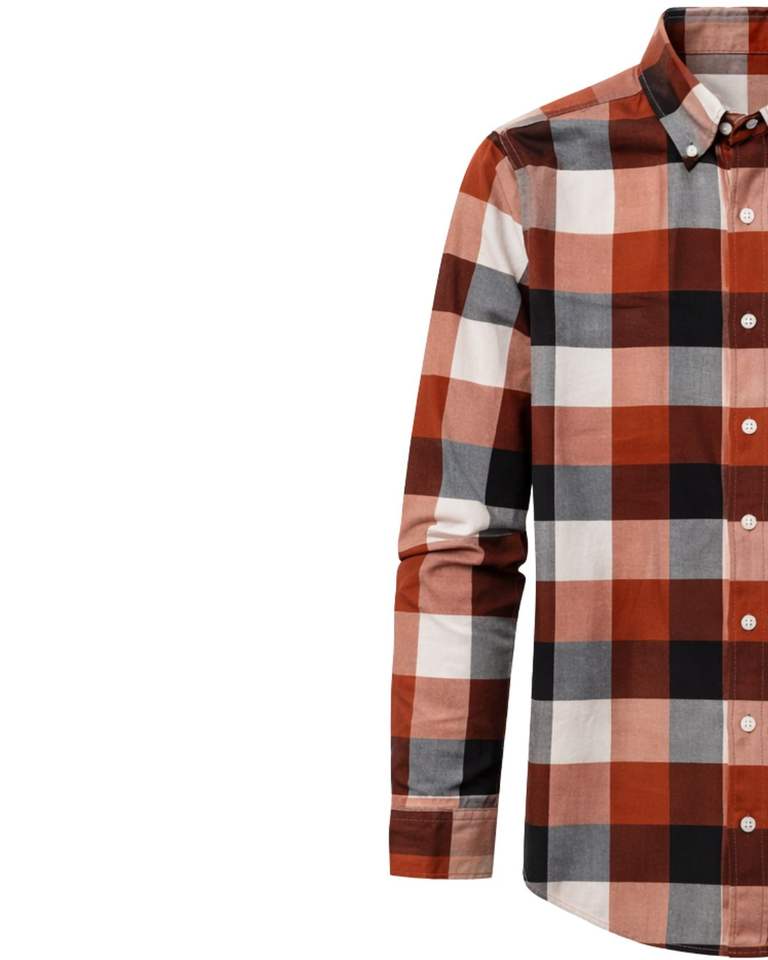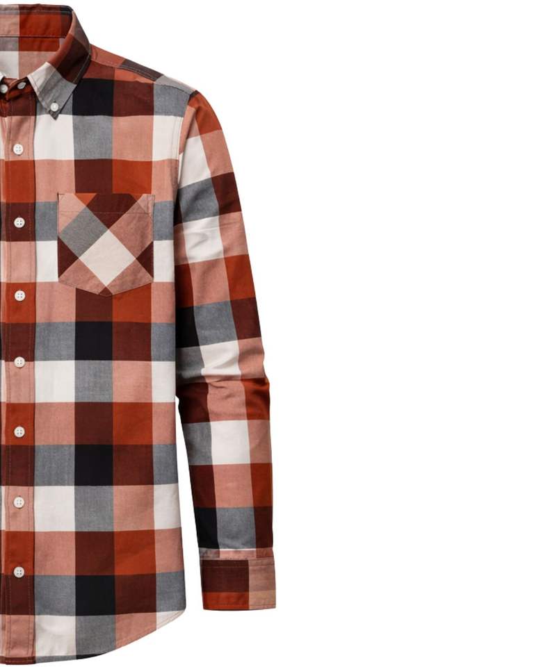Men Plaid Check Shirt Long Sleeve Button Down Casual Flannel Style Rust Brown Gray White Color Custom Manufacturer Wholesale OEM