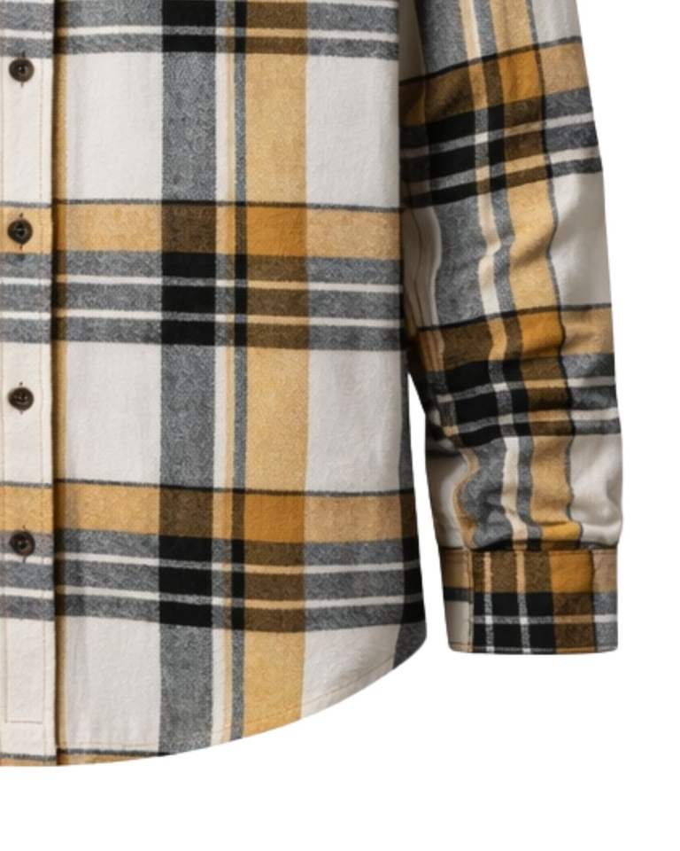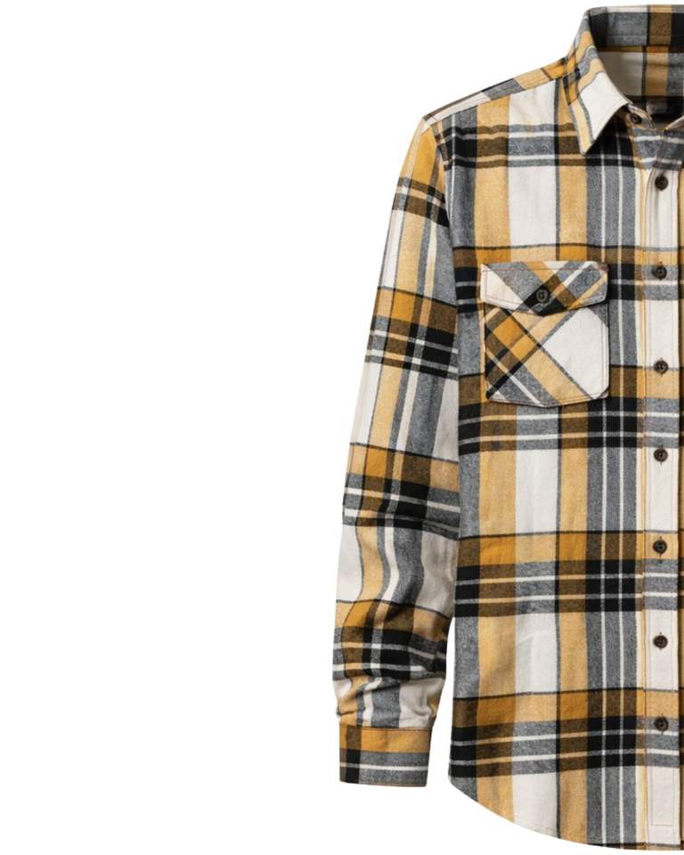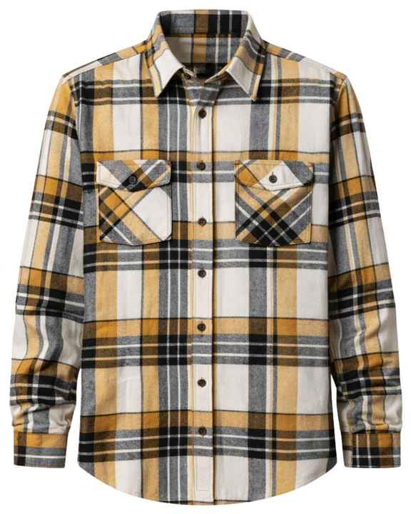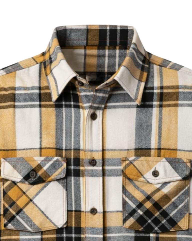 Men Plaid Check Shirt Long Sleeve Button Down Casual Flannel Style Mustard Yellow Black Gray White Color Customized Wholesale