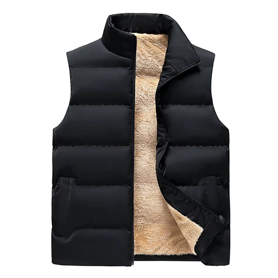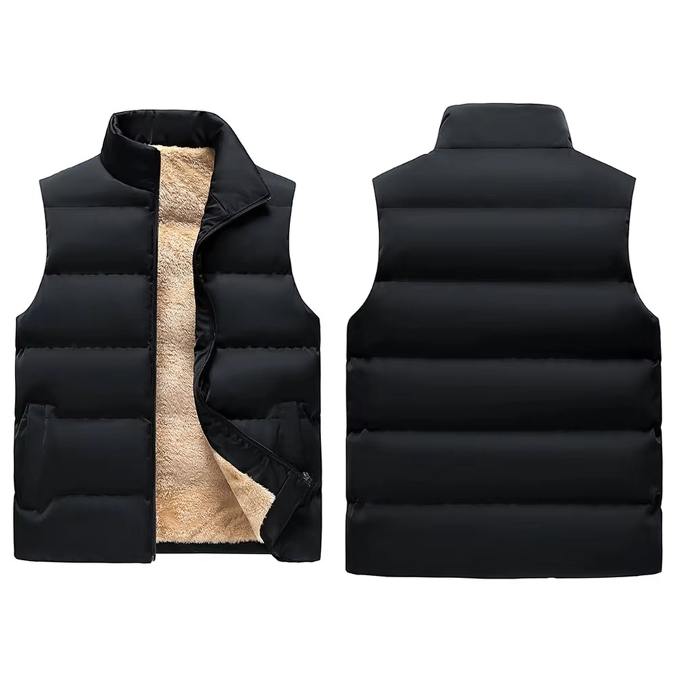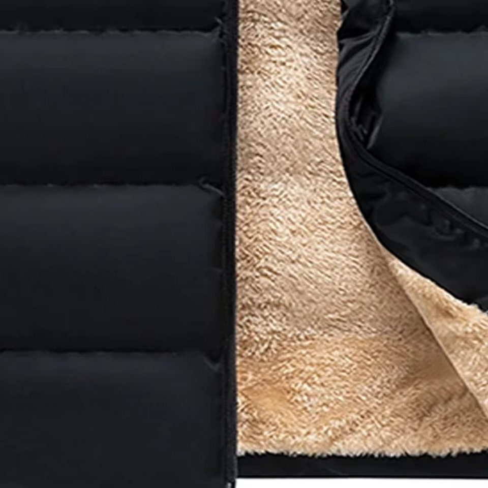 Men Quilted Puffer Vest Winter Warm Fleece Lined Stand Collar Full Zip Sleeveless Breathable Embroidered Polyester Nylon