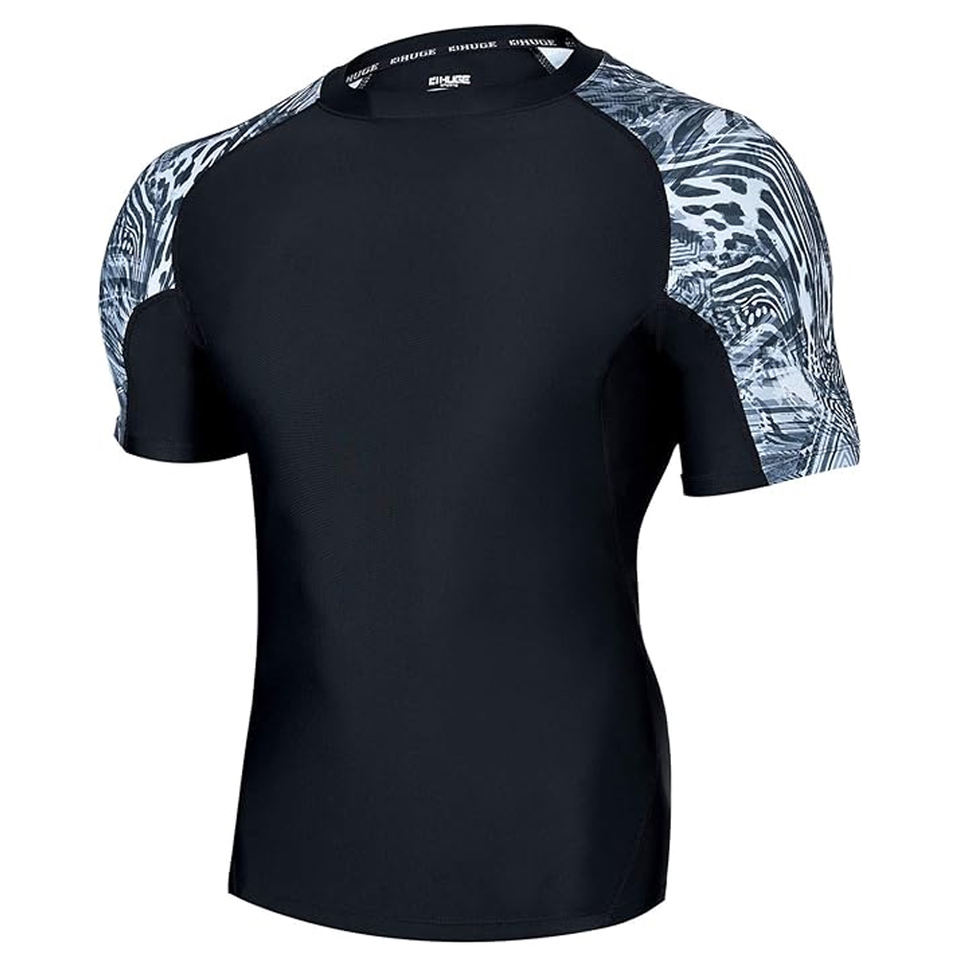 Men Rash Guard Compression T Shirt Short Sleeve Swim Shirt UV Protection Quick Dry Custom Logo Wholesale