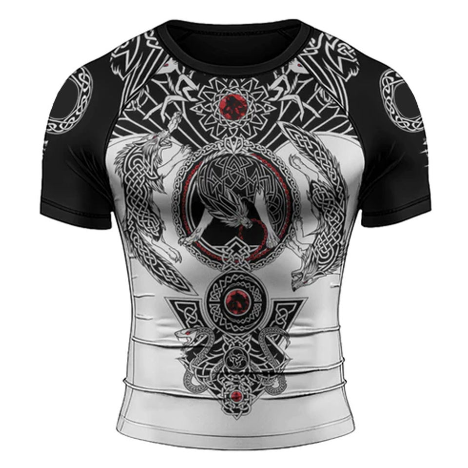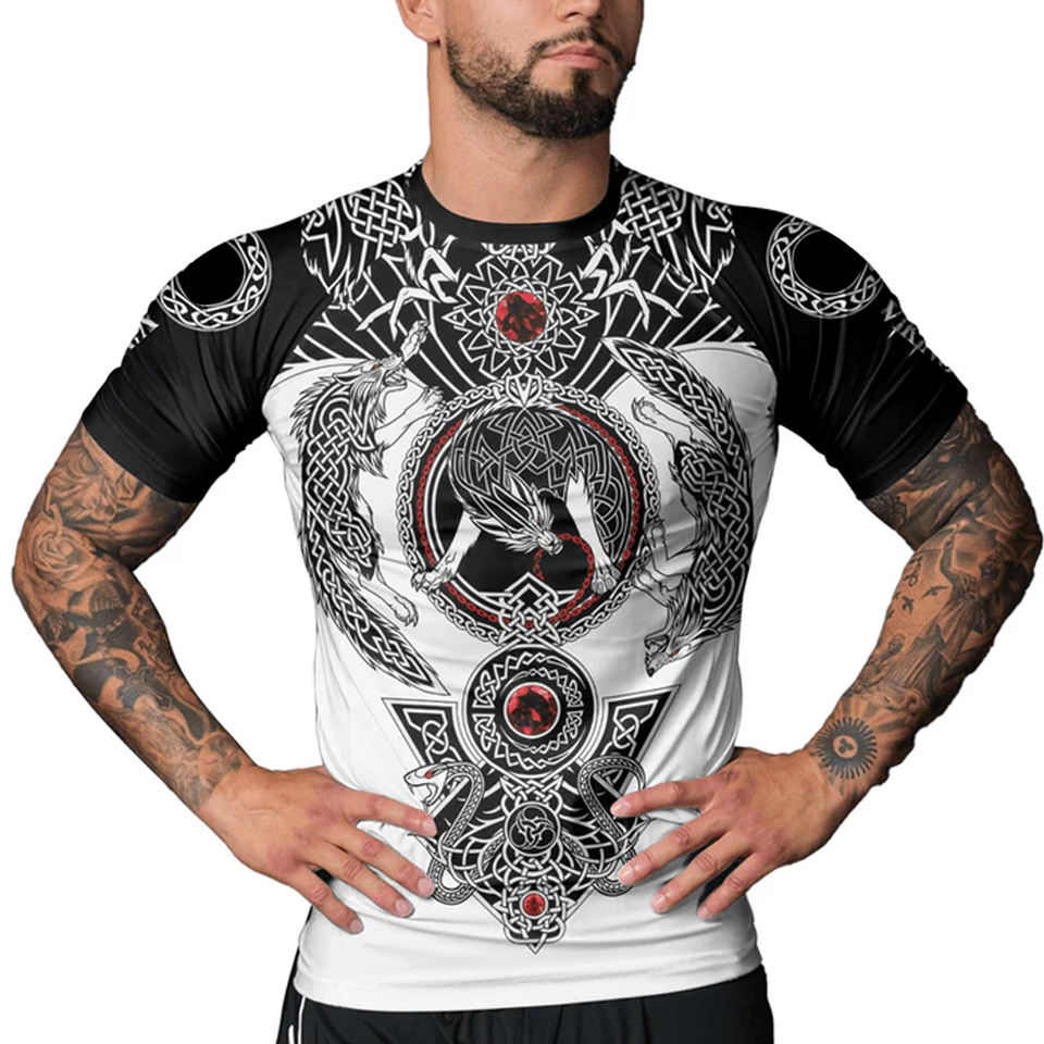 Men Rashguard & Shorts Set Short Sleeve Compression Rash Guard Shirt & MMA No-Gi Grappling Fightwear Sportswear Custom Logo