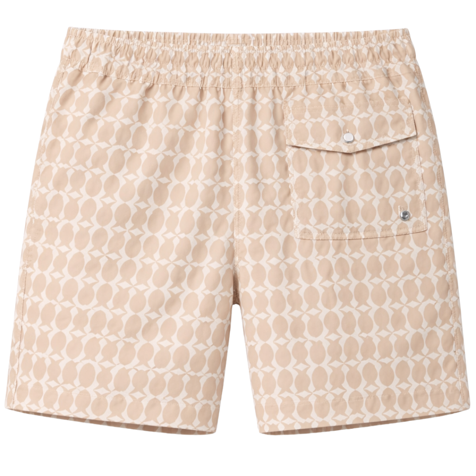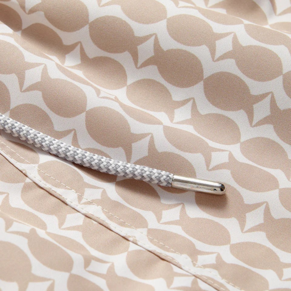 Men Recycled Swim Shorts Beige Geometric Pattern Quick Dry Beach Swim Trunks with Elastic Waist Drawstring Pockets
