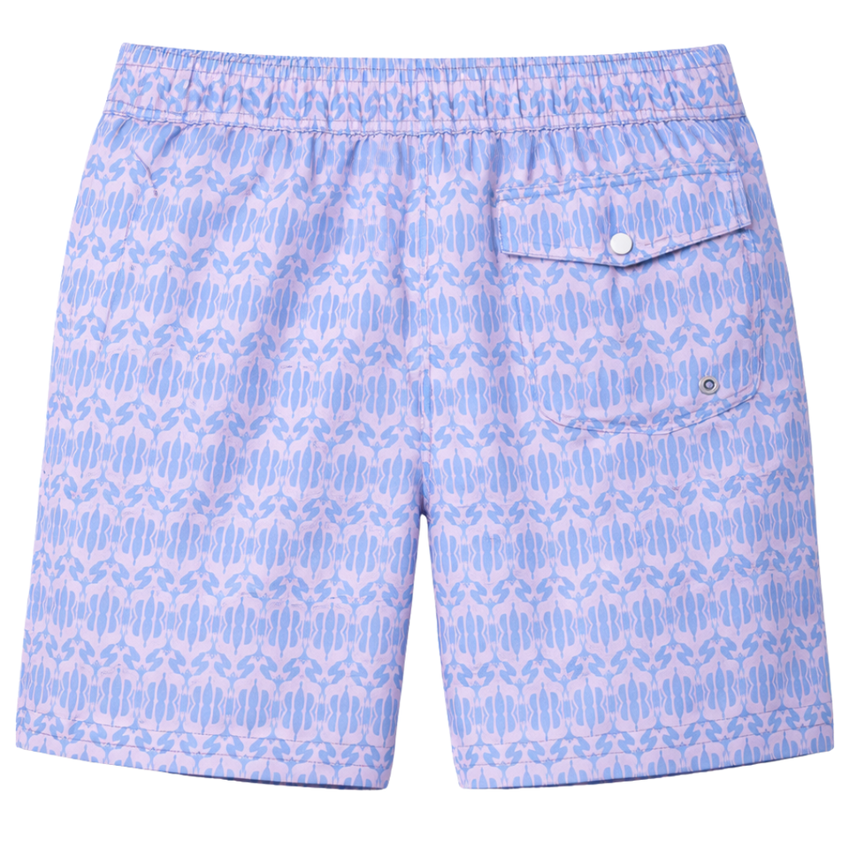 Men Recycled Swim Shorts Light Blue Abstract Pattern Quick Dry Beach Swim Trunks with Elastic Waist Drawstring Pockets